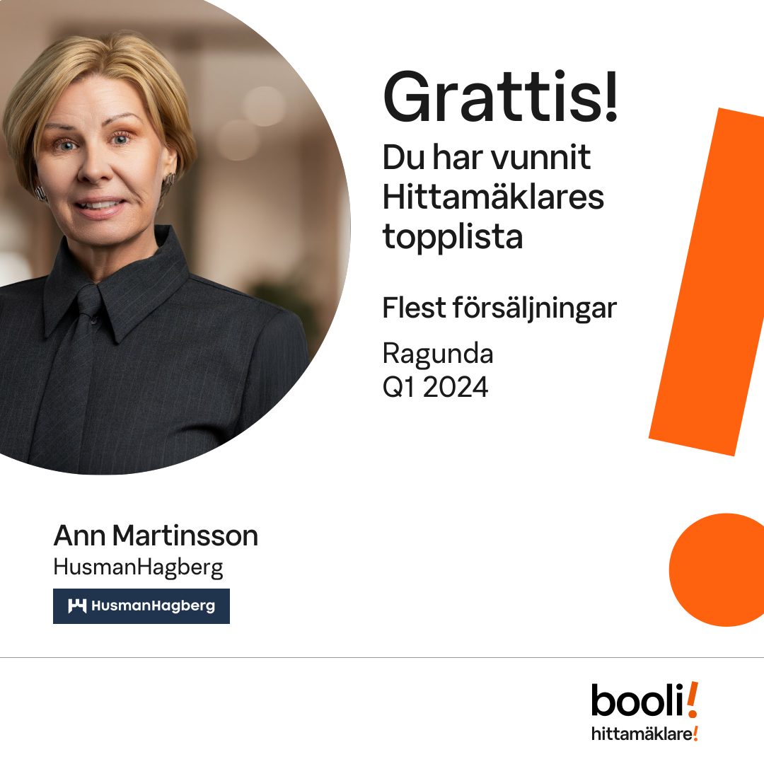Statistik för publicerade bostäder, försäljningar och omdömen baseras på data från Booli och Hittamäklare. Statistiken för försäljningar avser inrapporterade och verifierade slutpriser från mäklare eller av Booli inhämtade och verifierade slutpriser. Statistiken för publicerade bostäder baseras på information som publicerats på Booli.se. Statistik för omdömen och rekommendationer baseras på omdömen från säljare som lämnats via Booli och Hittamäklare.
