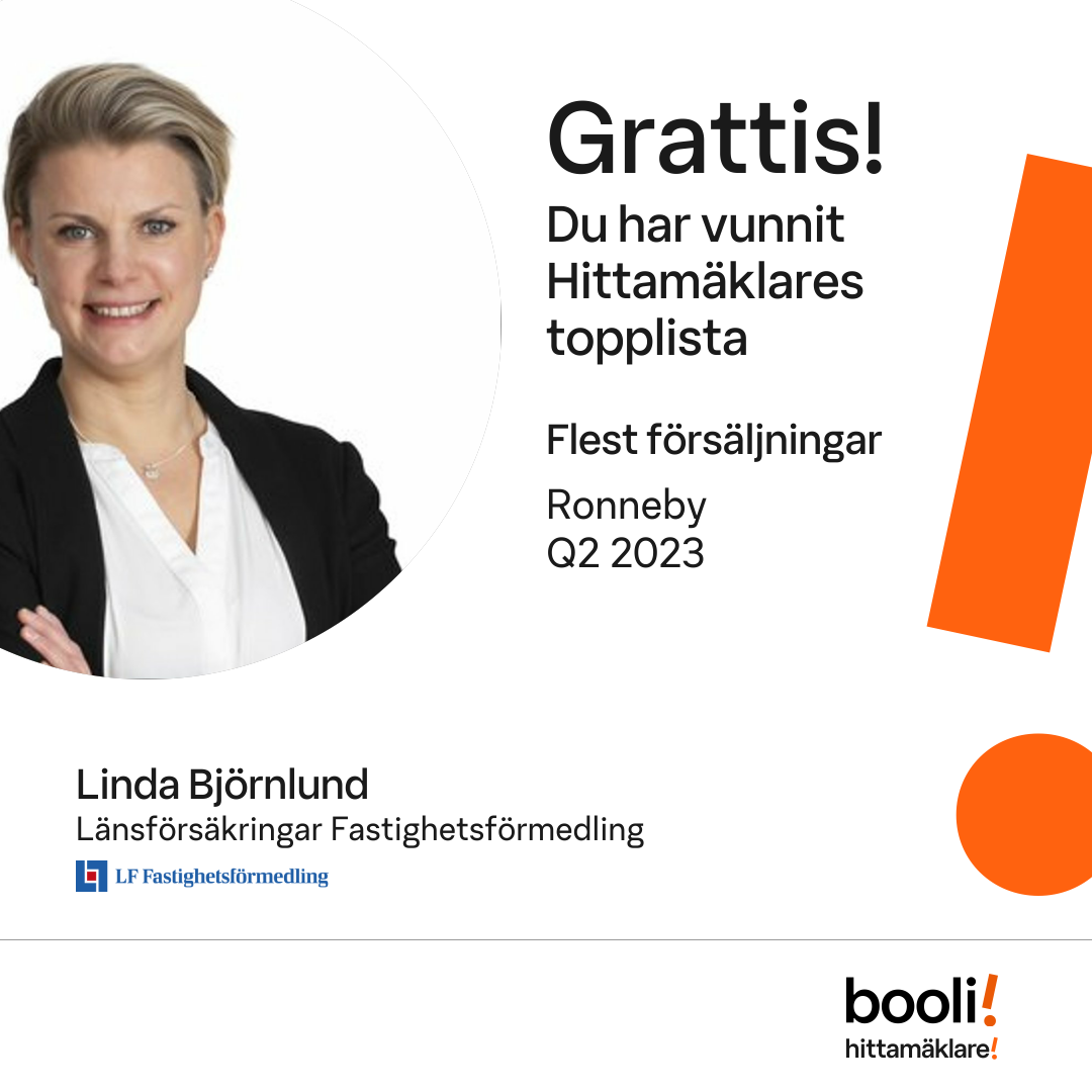 Statistik för publicerade bostäder, försäljningar och omdömen baseras på data från Booli och Hittamäklare. Statistiken för försäljningar avser inrapporterade och verifierade slutpriser från mäklare eller av Booli inhämtade och verifierade slutpriser. Statistiken för publicerade bostäder baseras på information som publicerats på Booli.se. Statistik för omdömen och rekommendationer baseras på omdömen från säljare som lämnats via Booli och Hittamäklare.