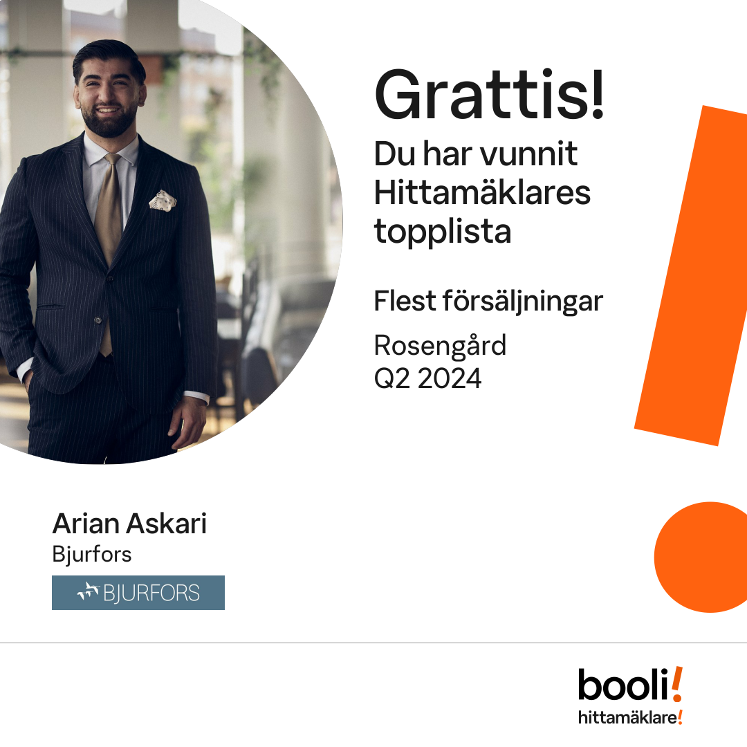 Statistik för publicerade bostäder, försäljningar och omdömen baseras på data från Booli och Hittamäklare. Statistiken för försäljningar avser inrapporterade och verifierade slutpriser från mäklare eller av Booli inhämtade och verifierade slutpriser. Statistiken för publicerade bostäder baseras på information som publicerats på Booli.se. Statistik för omdömen och rekommendationer baseras på omdömen från säljare som lämnats via Booli och Hittamäklare.