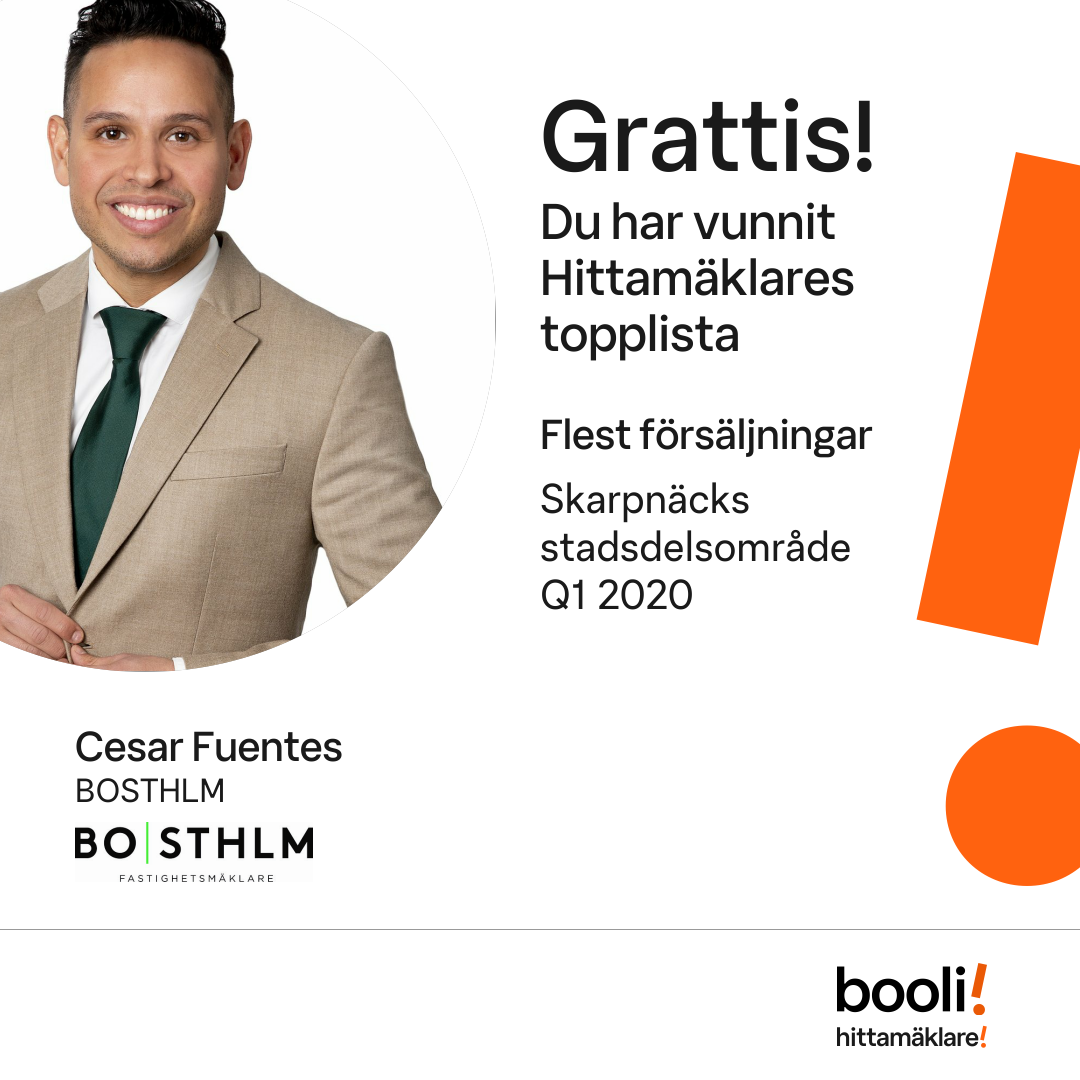 Statistik för publicerade bostäder, försäljningar och omdömen baseras på data från Booli och Hittamäklare. Statistiken för försäljningar avser inrapporterade och verifierade slutpriser från mäklare eller av Booli inhämtade och verifierade slutpriser. Statistiken för publicerade bostäder baseras på information som publicerats på Booli.se. Statistik för omdömen och rekommendationer baseras på omdömen från säljare som lämnats via Booli och Hittamäklare.