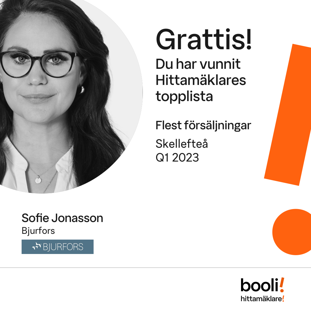 Statistik för publicerade bostäder, försäljningar och omdömen baseras på data från Booli och Hittamäklare. Statistiken för försäljningar avser inrapporterade och verifierade slutpriser från mäklare eller av Booli inhämtade och verifierade slutpriser. Statistiken för publicerade bostäder baseras på information som publicerats på Booli.se. Statistik för omdömen och rekommendationer baseras på omdömen från säljare som lämnats via Booli och Hittamäklare.