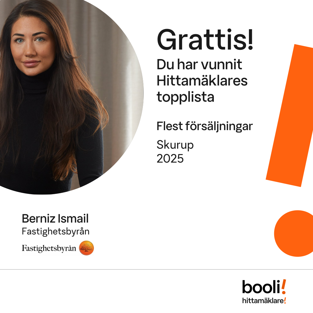 Statistik för publicerade bostäder, försäljningar och omdömen baseras på data från Booli och Hittamäklare. Statistiken för försäljningar avser inrapporterade och verifierade slutpriser från mäklare eller av Booli inhämtade och verifierade slutpriser. Statistiken för publicerade bostäder baseras på information som publicerats på Booli.se. Statistik för omdömen och rekommendationer baseras på omdömen från säljare som lämnats via Booli och Hittamäklare.