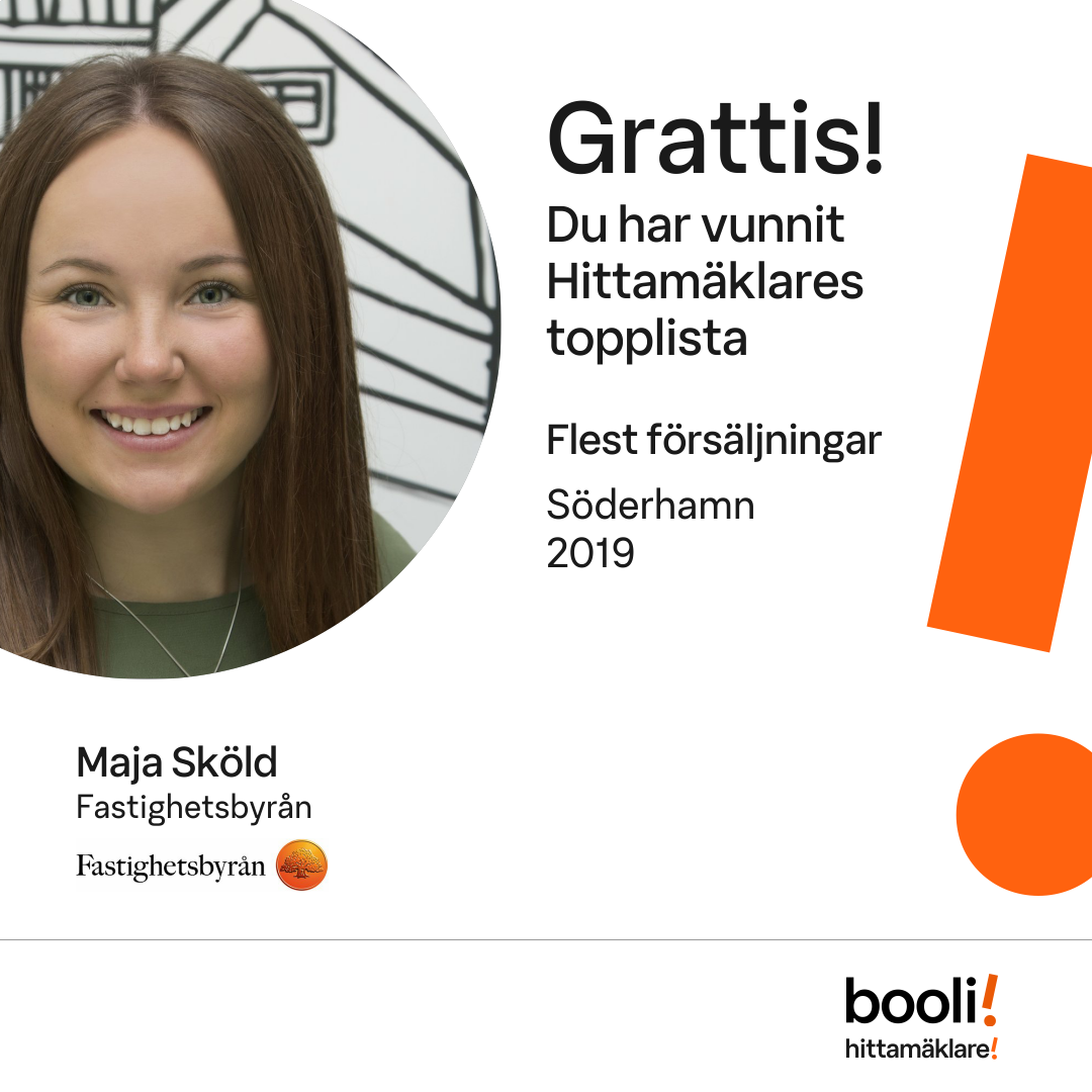 Statistik för publicerade bostäder, försäljningar och omdömen baseras på data från Booli och Hittamäklare. Statistiken för försäljningar avser inrapporterade och verifierade slutpriser från mäklare eller av Booli inhämtade och verifierade slutpriser. Statistiken för publicerade bostäder baseras på information som publicerats på Booli.se. Statistik för omdömen och rekommendationer baseras på omdömen från säljare som lämnats via Booli och Hittamäklare.