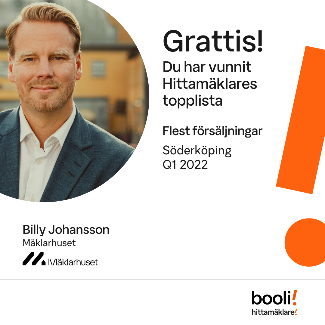 Statistik för publicerade bostäder, försäljningar och omdömen baseras på data från Booli och Hittamäklare. Statistiken för försäljningar avser inrapporterade och verifierade slutpriser från mäklare eller av Booli inhämtade och verifierade slutpriser. Statistiken för publicerade bostäder baseras på information som publicerats på Booli.se. Statistik för omdömen och rekommendationer baseras på omdömen från säljare som lämnats via Booli och Hittamäklare.