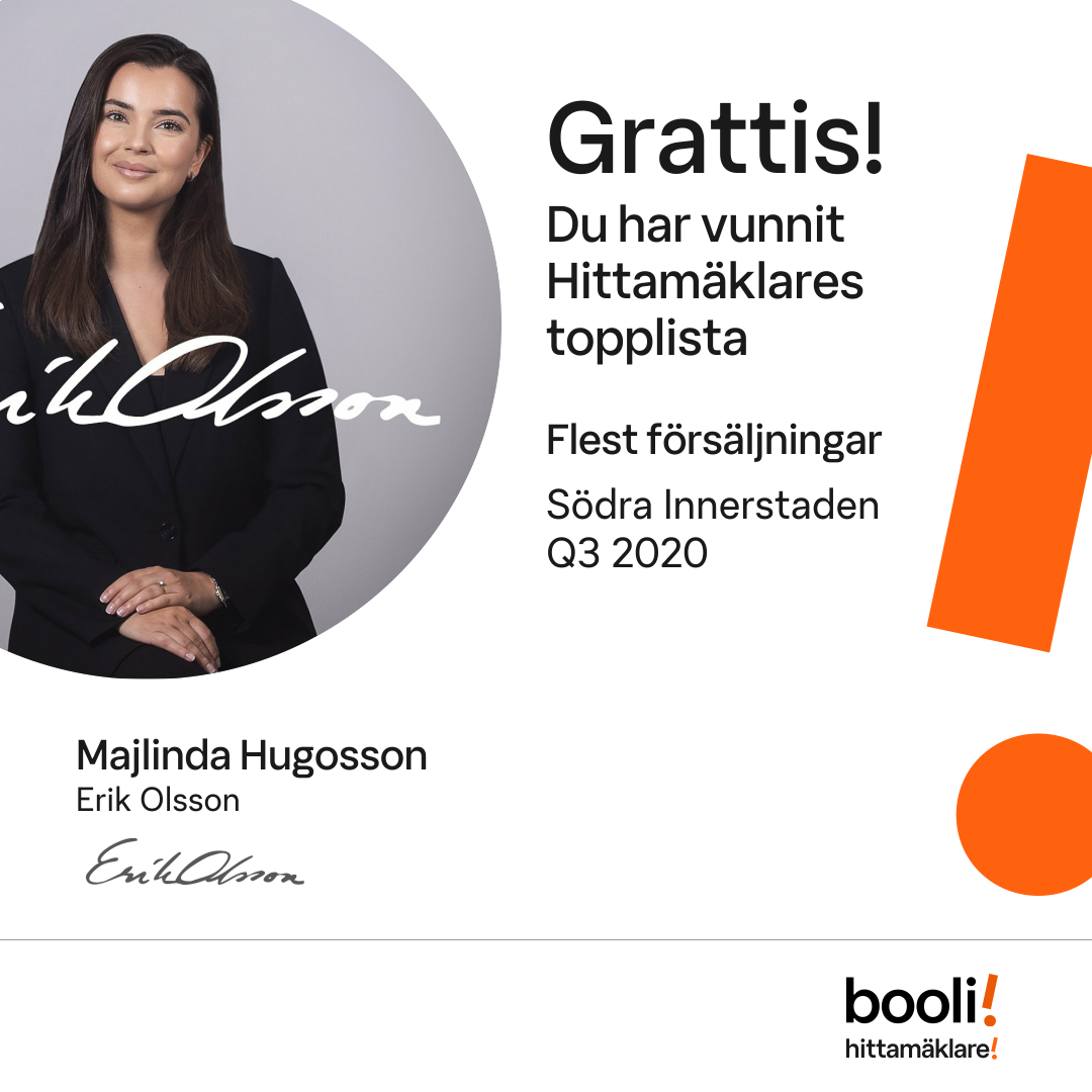 Statistik för publicerade bostäder, försäljningar och omdömen baseras på data från Booli och Hittamäklare. Statistiken för försäljningar avser inrapporterade och verifierade slutpriser från mäklare eller av Booli inhämtade och verifierade slutpriser. Statistiken för publicerade bostäder baseras på information som publicerats på Booli.se. Statistik för omdömen och rekommendationer baseras på omdömen från säljare som lämnats via Booli och Hittamäklare.