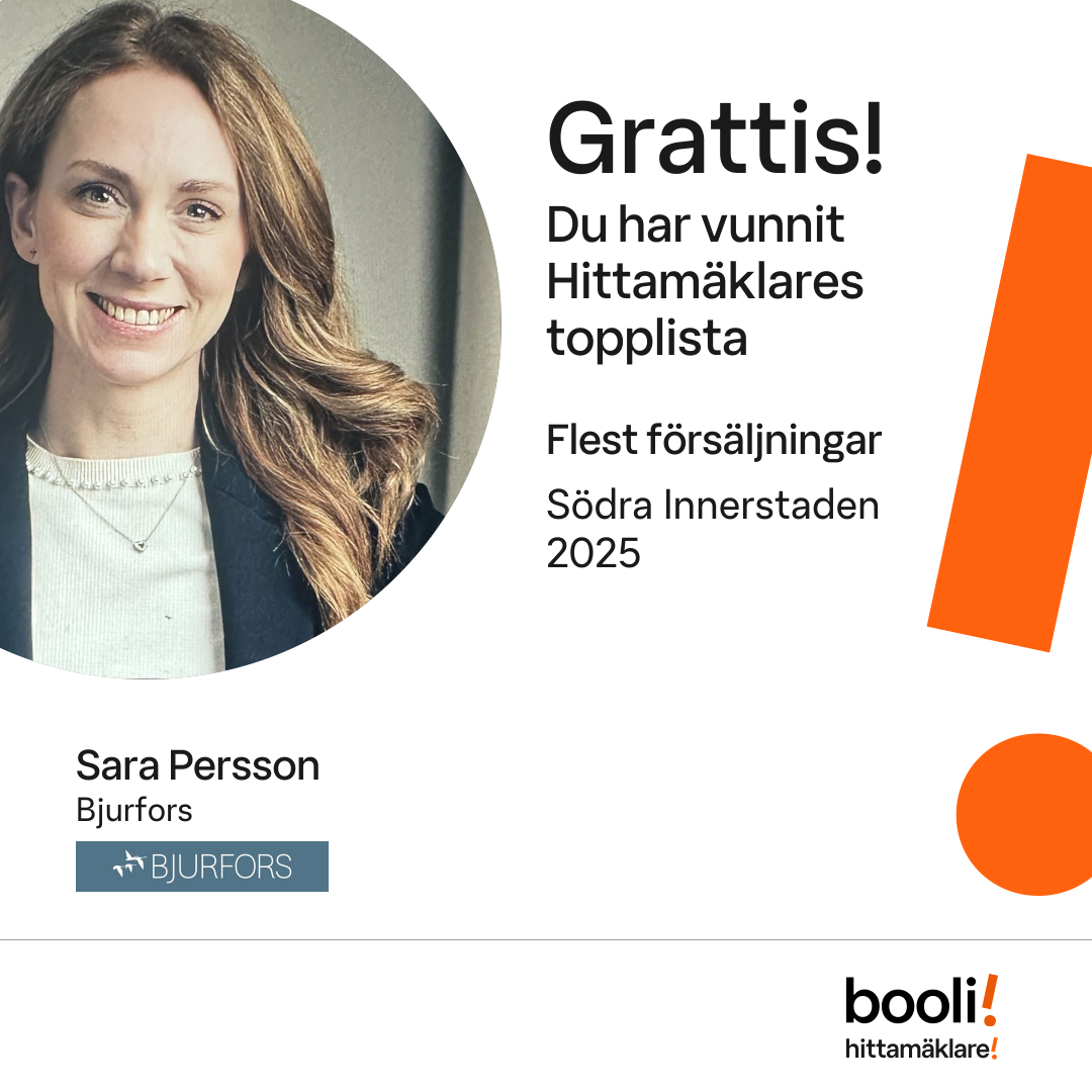 Statistik för publicerade bostäder, försäljningar och omdömen baseras på data från Booli och Hittamäklare. Statistiken för försäljningar avser inrapporterade och verifierade slutpriser från mäklare eller av Booli inhämtade och verifierade slutpriser. Statistiken för publicerade bostäder baseras på information som publicerats på Booli.se. Statistik för omdömen och rekommendationer baseras på omdömen från säljare som lämnats via Booli och Hittamäklare.