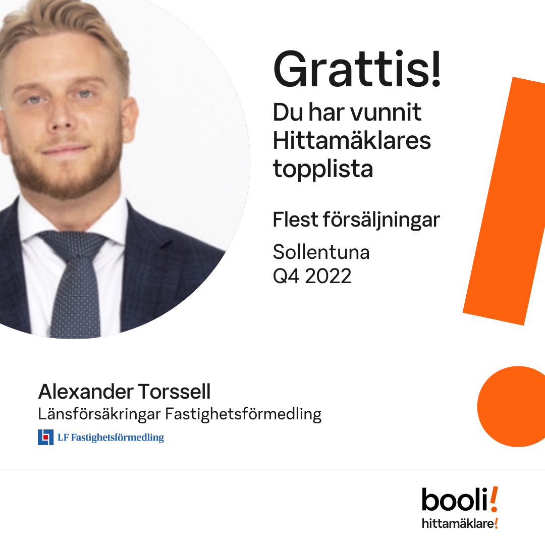 Statistik för publicerade bostäder, försäljningar och omdömen baseras på data från Booli och Hittamäklare. Statistiken för försäljningar avser inrapporterade och verifierade slutpriser från mäklare eller av Booli inhämtade och verifierade slutpriser. Statistiken för publicerade bostäder baseras på information som publicerats på Booli.se. Statistik för omdömen och rekommendationer baseras på omdömen från säljare som lämnats via Booli och Hittamäklare.