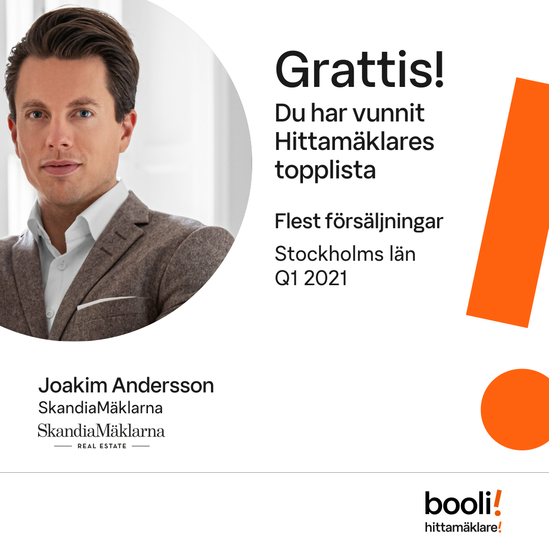 Statistik för publicerade bostäder, försäljningar och omdömen baseras på data från Booli och Hittamäklare. Statistiken för försäljningar avser inrapporterade och verifierade slutpriser från mäklare eller av Booli inhämtade och verifierade slutpriser. Statistiken för publicerade bostäder baseras på information som publicerats på Booli.se. Statistik för omdömen och rekommendationer baseras på omdömen från säljare som lämnats via Booli och Hittamäklare.