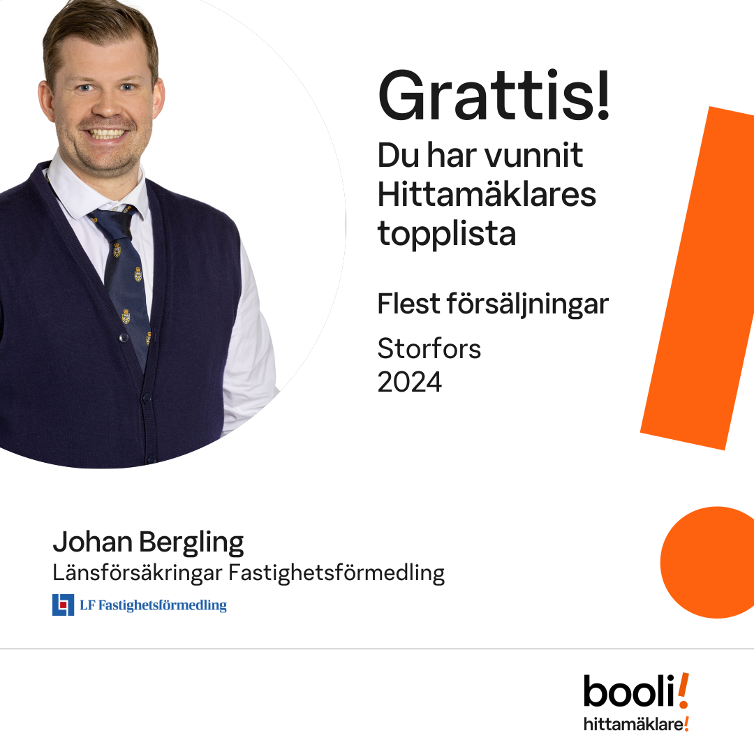 Statistik för publicerade bostäder, försäljningar och omdömen baseras på data från Booli och Hittamäklare. Statistiken för försäljningar avser inrapporterade och verifierade slutpriser från mäklare eller av Booli inhämtade och verifierade slutpriser. Statistiken för publicerade bostäder baseras på information som publicerats på Booli.se. Statistik för omdömen och rekommendationer baseras på omdömen från säljare som lämnats via Booli och Hittamäklare.