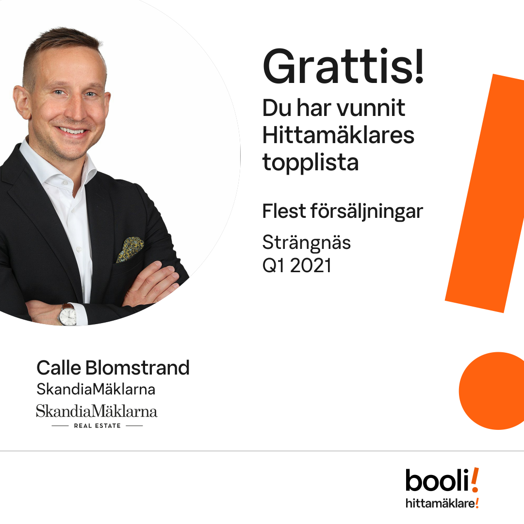 Statistik för publicerade bostäder, försäljningar och omdömen baseras på data från Booli och Hittamäklare. Statistiken för försäljningar avser inrapporterade och verifierade slutpriser från mäklare eller av Booli inhämtade och verifierade slutpriser. Statistiken för publicerade bostäder baseras på information som publicerats på Booli.se. Statistik för omdömen och rekommendationer baseras på omdömen från säljare som lämnats via Booli och Hittamäklare.