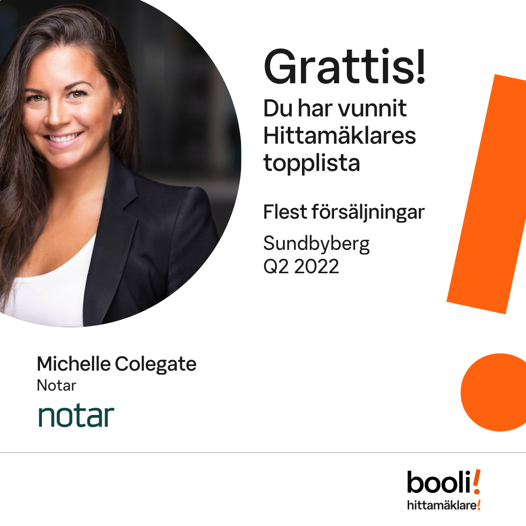 Statistik för publicerade bostäder, försäljningar och omdömen baseras på data från Booli och Hittamäklare. Statistiken för försäljningar avser inrapporterade och verifierade slutpriser från mäklare eller av Booli inhämtade och verifierade slutpriser. Statistiken för publicerade bostäder baseras på information som publicerats på Booli.se. Statistik för omdömen och rekommendationer baseras på omdömen från säljare som lämnats via Booli och Hittamäklare.