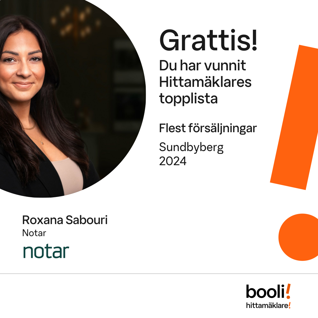 Statistik för publicerade bostäder, försäljningar och omdömen baseras på data från Booli och Hittamäklare. Statistiken för försäljningar avser inrapporterade och verifierade slutpriser från mäklare eller av Booli inhämtade och verifierade slutpriser. Statistiken för publicerade bostäder baseras på information som publicerats på Booli.se. Statistik för omdömen och rekommendationer baseras på omdömen från säljare som lämnats via Booli och Hittamäklare.