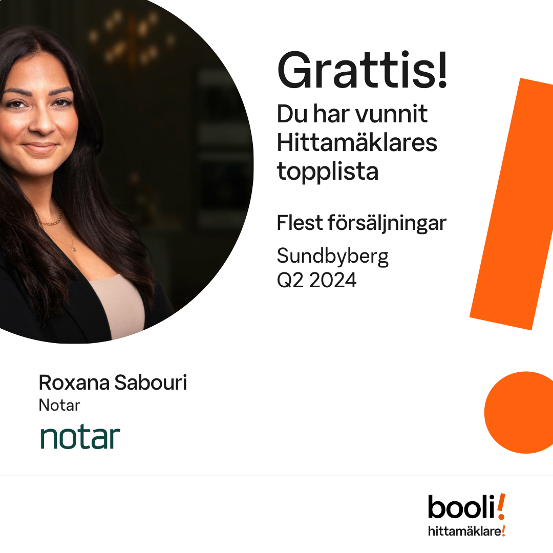 Statistik för publicerade bostäder, försäljningar och omdömen baseras på data från Booli och Hittamäklare. Statistiken för försäljningar avser inrapporterade och verifierade slutpriser från mäklare eller av Booli inhämtade och verifierade slutpriser. Statistiken för publicerade bostäder baseras på information som publicerats på Booli.se. Statistik för omdömen och rekommendationer baseras på omdömen från säljare som lämnats via Booli och Hittamäklare.