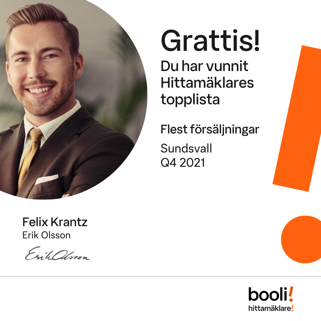 Statistik för publicerade bostäder, försäljningar och omdömen baseras på data från Booli och Hittamäklare. Statistiken för försäljningar avser inrapporterade och verifierade slutpriser från mäklare eller av Booli inhämtade och verifierade slutpriser. Statistiken för publicerade bostäder baseras på information som publicerats på Booli.se. Statistik för omdömen och rekommendationer baseras på omdömen från säljare som lämnats via Booli och Hittamäklare.