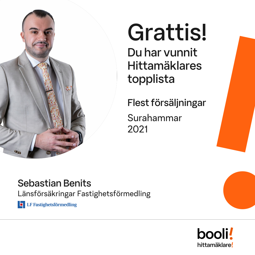 Statistik för publicerade bostäder, försäljningar och omdömen baseras på data från Booli och Hittamäklare. Statistiken för försäljningar avser inrapporterade och verifierade slutpriser från mäklare eller av Booli inhämtade och verifierade slutpriser. Statistiken för publicerade bostäder baseras på information som publicerats på Booli.se. Statistik för omdömen och rekommendationer baseras på omdömen från säljare som lämnats via Booli och Hittamäklare.