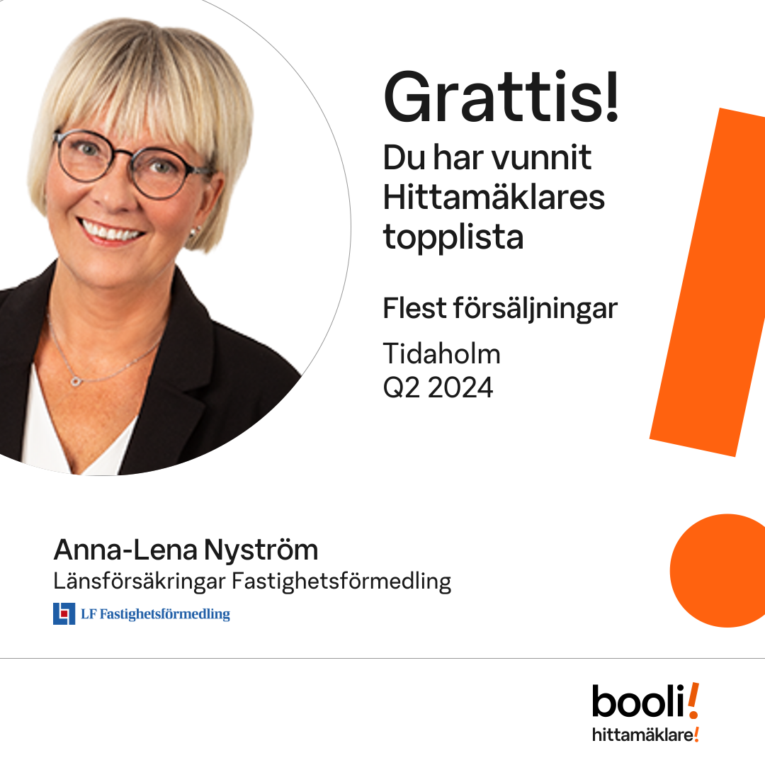Statistik för publicerade bostäder, försäljningar och omdömen baseras på data från Booli och Hittamäklare. Statistiken för försäljningar avser inrapporterade och verifierade slutpriser från mäklare eller av Booli inhämtade och verifierade slutpriser. Statistiken för publicerade bostäder baseras på information som publicerats på Booli.se. Statistik för omdömen och rekommendationer baseras på omdömen från säljare som lämnats via Booli och Hittamäklare.