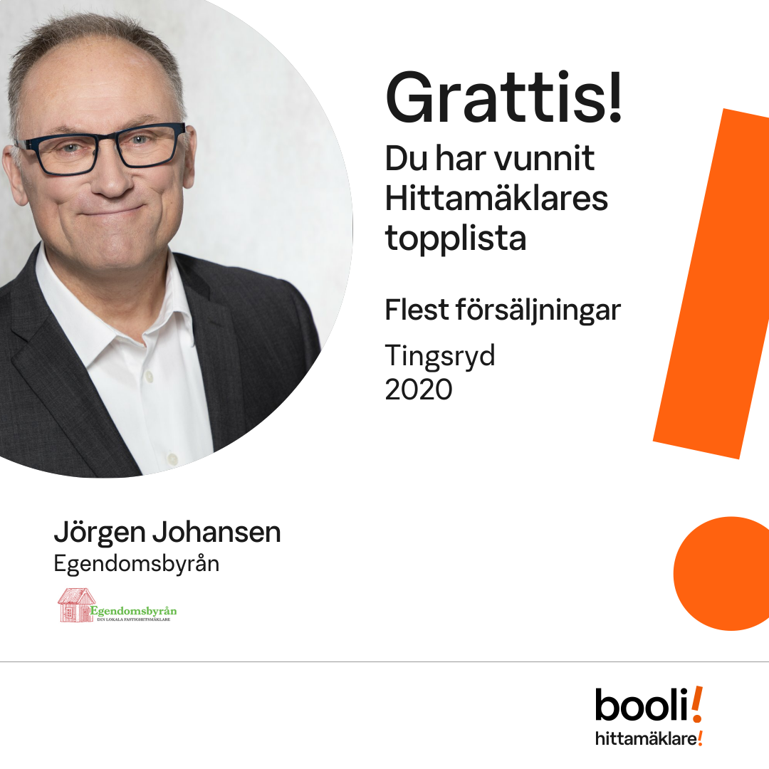 Statistik för publicerade bostäder, försäljningar och omdömen baseras på data från Booli. Statistiken för försäljningar avser inrapporterade och verifierade slutpriser från mäklare eller av Booli inhämtade och verifierade slutpriser. Statistiken för publicerade bostäder baseras på information som publicerats på Booli.se. Statistik för omdömen och rekommendationer baseras på omdömen från säljare som lämnats via Booli.