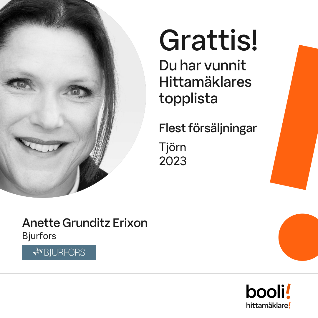 Statistik för publicerade bostäder, försäljningar och omdömen baseras på data från Booli och Hittamäklare. Statistiken för försäljningar avser inrapporterade och verifierade slutpriser från mäklare eller av Booli inhämtade och verifierade slutpriser. Statistiken för publicerade bostäder baseras på information som publicerats på Booli.se. Statistik för omdömen och rekommendationer baseras på omdömen från säljare som lämnats via Booli och Hittamäklare.