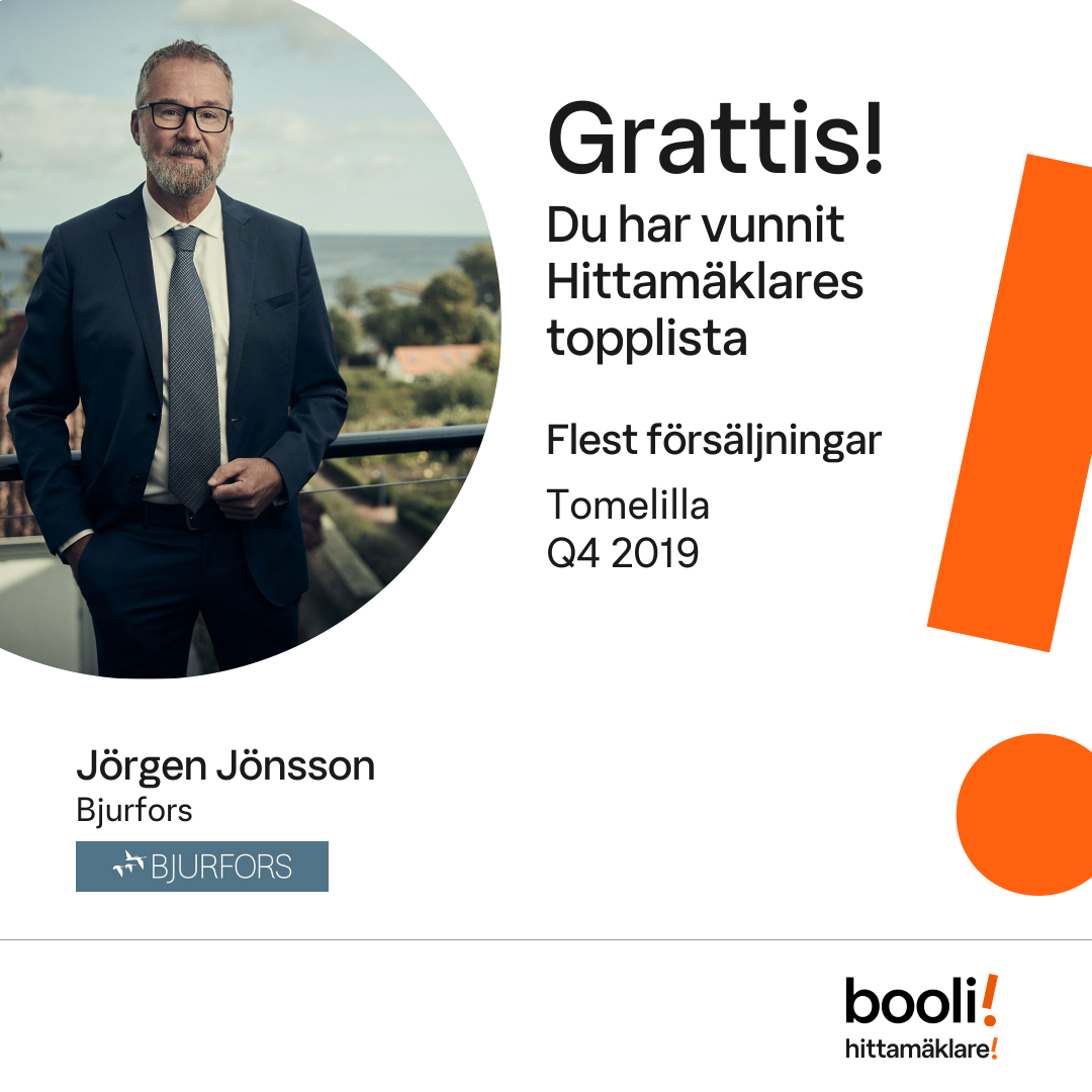 Statistik för publicerade bostäder, försäljningar och omdömen baseras på data från Booli och Hittamäklare. Statistiken för försäljningar avser inrapporterade och verifierade slutpriser från mäklare eller av Booli inhämtade och verifierade slutpriser. Statistiken för publicerade bostäder baseras på information som publicerats på Booli.se. Statistik för omdömen och rekommendationer baseras på omdömen från säljare som lämnats via Booli och Hittamäklare.