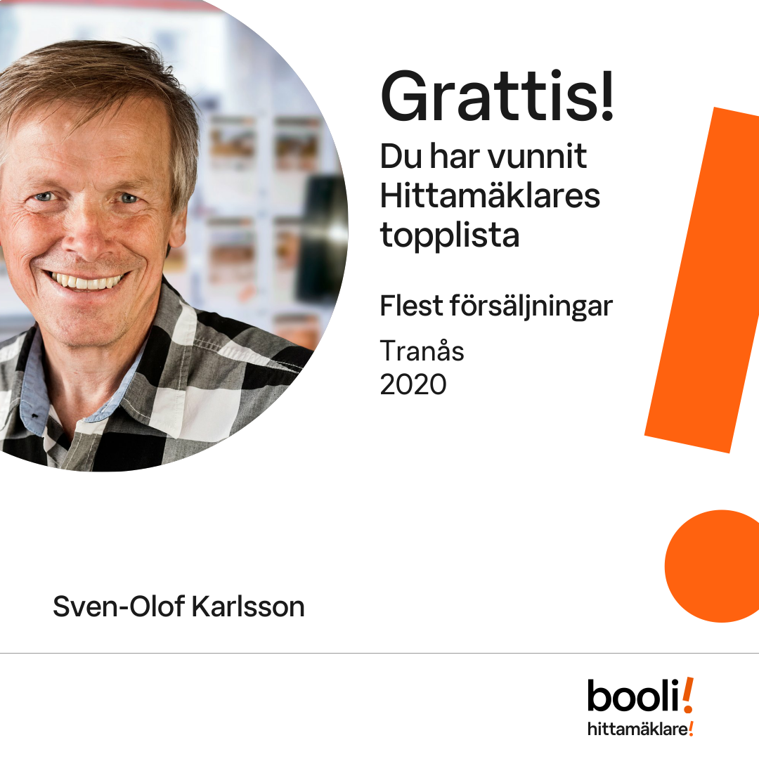 Statistik för publicerade bostäder, försäljningar och omdömen baseras på data från Booli och Hittamäklare. Statistiken för försäljningar avser inrapporterade och verifierade slutpriser från mäklare eller av Booli inhämtade och verifierade slutpriser. Statistiken för publicerade bostäder baseras på information som publicerats på Booli.se. Statistik för omdömen och rekommendationer baseras på omdömen från säljare som lämnats via Booli och Hittamäklare.
