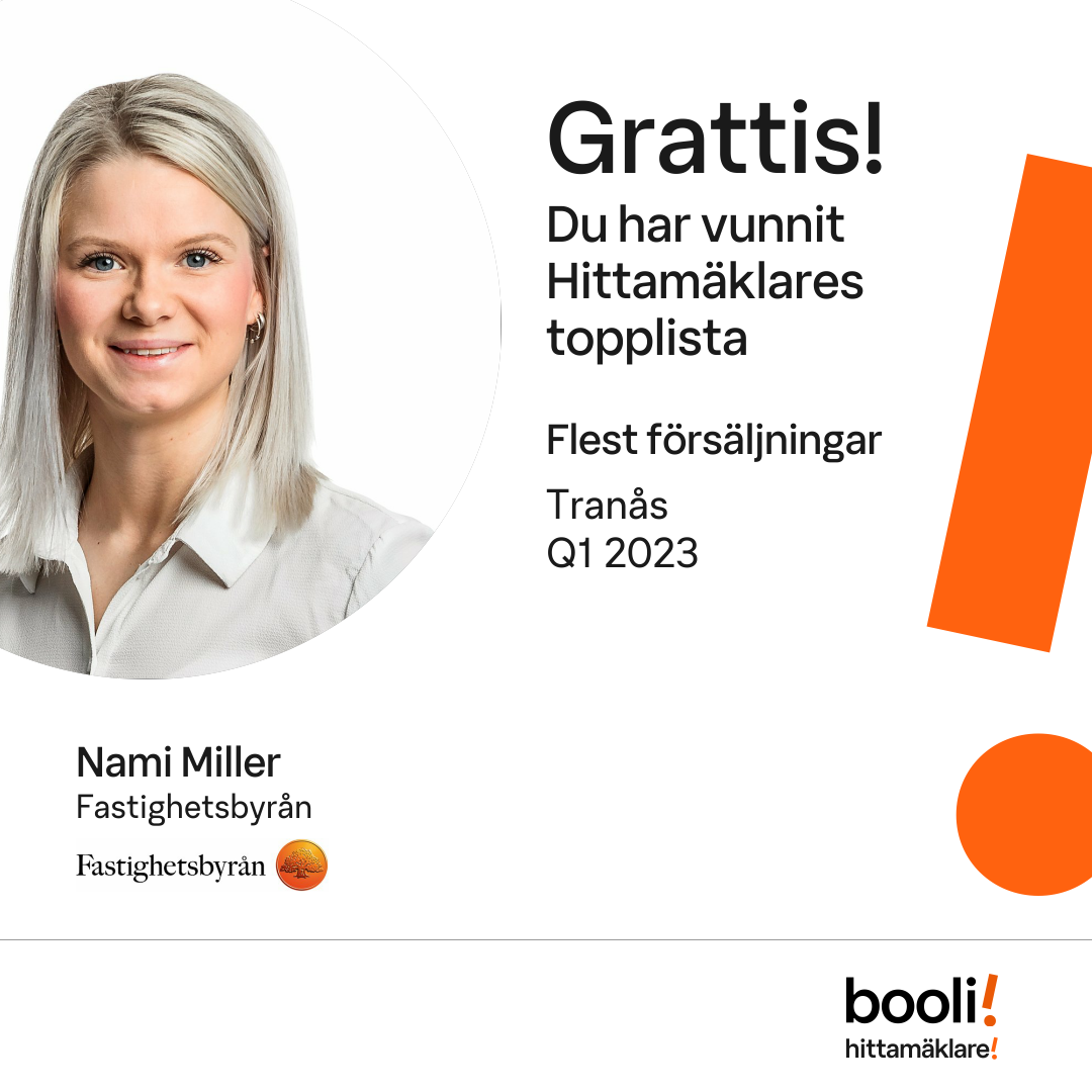 Statistik för publicerade bostäder, försäljningar och omdömen baseras på data från Booli och Hittamäklare. Statistiken för försäljningar avser inrapporterade och verifierade slutpriser från mäklare eller av Booli inhämtade och verifierade slutpriser. Statistiken för publicerade bostäder baseras på information som publicerats på Booli.se. Statistik för omdömen och rekommendationer baseras på omdömen från säljare som lämnats via Booli och Hittamäklare.