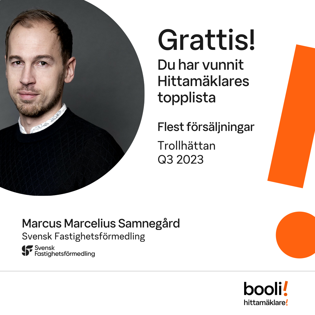 Statistik för publicerade bostäder, försäljningar och omdömen baseras på data från Booli och Hittamäklare. Statistiken för försäljningar avser inrapporterade och verifierade slutpriser från mäklare eller av Booli inhämtade och verifierade slutpriser. Statistiken för publicerade bostäder baseras på information som publicerats på Booli.se. Statistik för omdömen och rekommendationer baseras på omdömen från säljare som lämnats via Booli och Hittamäklare.