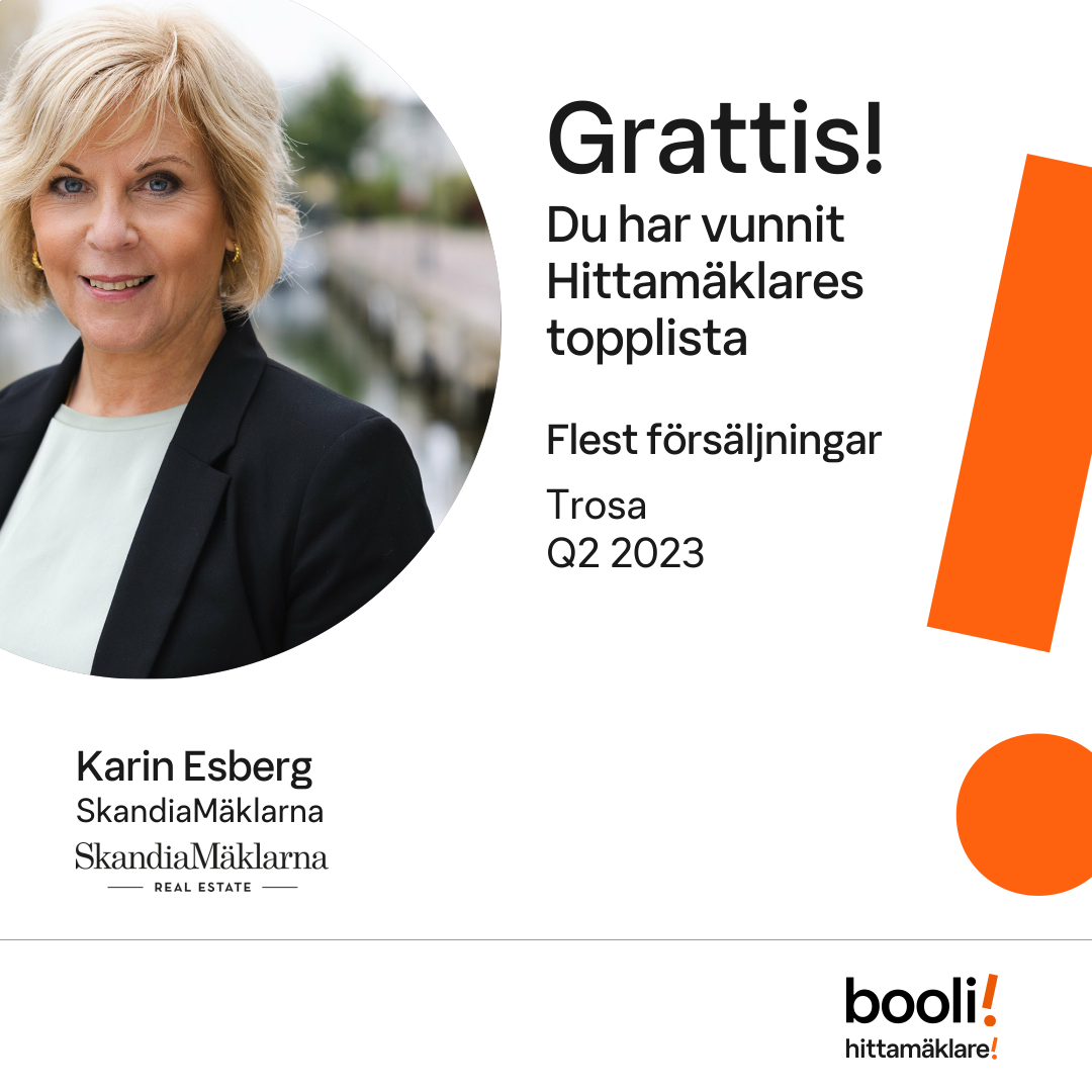 Statistik för publicerade bostäder, försäljningar och omdömen baseras på data från Booli och Hittamäklare. Statistiken för försäljningar avser inrapporterade och verifierade slutpriser från mäklare eller av Booli inhämtade och verifierade slutpriser. Statistiken för publicerade bostäder baseras på information som publicerats på Booli.se. Statistik för omdömen och rekommendationer baseras på omdömen från säljare som lämnats via Booli och Hittamäklare.