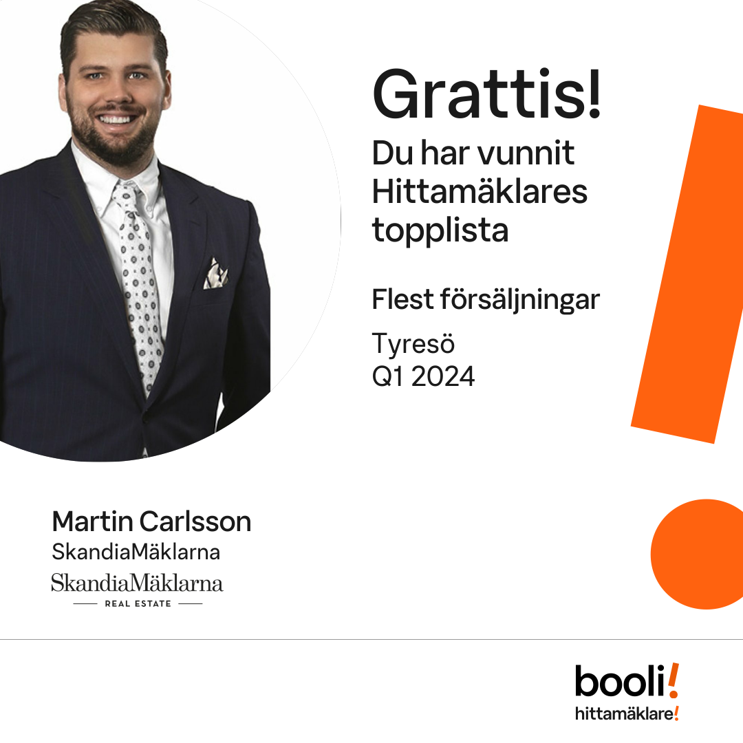 Statistik för publicerade bostäder, försäljningar och omdömen baseras på data från Booli och Hittamäklare. Statistiken för försäljningar avser inrapporterade och verifierade slutpriser från mäklare eller av Booli inhämtade och verifierade slutpriser. Statistiken för publicerade bostäder baseras på information som publicerats på Booli.se. Statistik för omdömen och rekommendationer baseras på omdömen från säljare som lämnats via Booli och Hittamäklare.