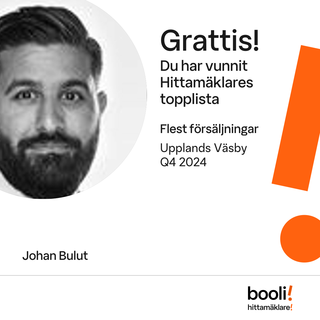 Statistik för publicerade bostäder, försäljningar och omdömen baseras på data från Booli och Hittamäklare. Statistiken för försäljningar avser inrapporterade och verifierade slutpriser från mäklare eller av Booli inhämtade och verifierade slutpriser. Statistiken för publicerade bostäder baseras på information som publicerats på Booli.se. Statistik för omdömen och rekommendationer baseras på omdömen från säljare som lämnats via Booli och Hittamäklare.