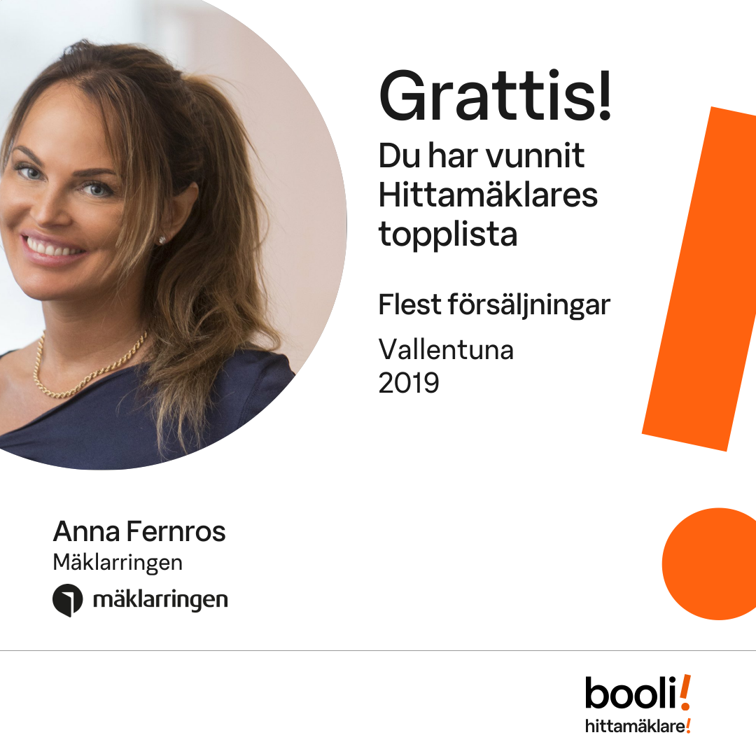 Statistik för publicerade bostäder, försäljningar och omdömen baseras på data från Booli och Hittamäklare. Statistiken för försäljningar avser inrapporterade och verifierade slutpriser från mäklare eller av Booli inhämtade och verifierade slutpriser. Statistiken för publicerade bostäder baseras på information som publicerats på Booli.se. Statistik för omdömen och rekommendationer baseras på omdömen från säljare som lämnats via Booli och Hittamäklare.