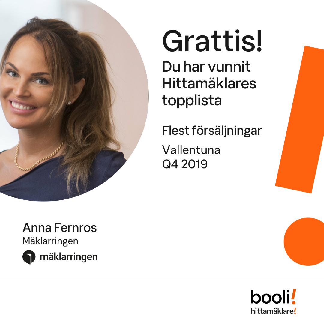 Statistik för publicerade bostäder, försäljningar och omdömen baseras på data från Booli och Hittamäklare. Statistiken för försäljningar avser inrapporterade och verifierade slutpriser från mäklare eller av Booli inhämtade och verifierade slutpriser. Statistiken för publicerade bostäder baseras på information som publicerats på Booli.se. Statistik för omdömen och rekommendationer baseras på omdömen från säljare som lämnats via Booli och Hittamäklare.