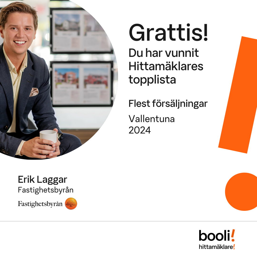Statistik för publicerade bostäder, försäljningar och omdömen baseras på data från Booli och Hittamäklare. Statistiken för försäljningar avser inrapporterade och verifierade slutpriser från mäklare eller av Booli inhämtade och verifierade slutpriser. Statistiken för publicerade bostäder baseras på information som publicerats på Booli.se. Statistik för omdömen och rekommendationer baseras på omdömen från säljare som lämnats via Booli och Hittamäklare.
