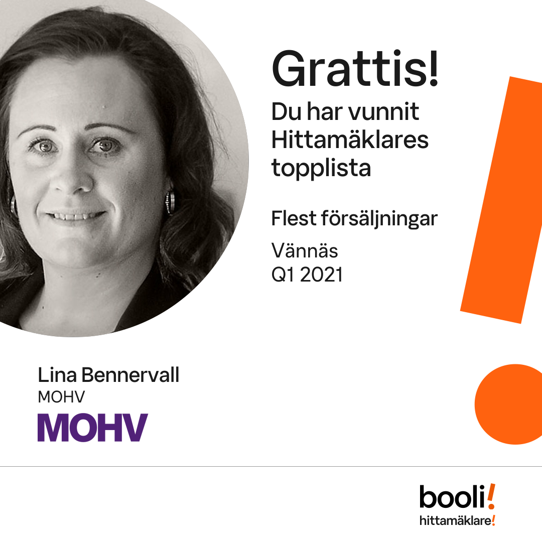 Statistik för publicerade bostäder, försäljningar och omdömen baseras på data från Booli och Hittamäklare. Statistiken för försäljningar avser inrapporterade och verifierade slutpriser från mäklare eller av Booli inhämtade och verifierade slutpriser. Statistiken för publicerade bostäder baseras på information som publicerats på Booli.se. Statistik för omdömen och rekommendationer baseras på omdömen från säljare som lämnats via Booli och Hittamäklare.
