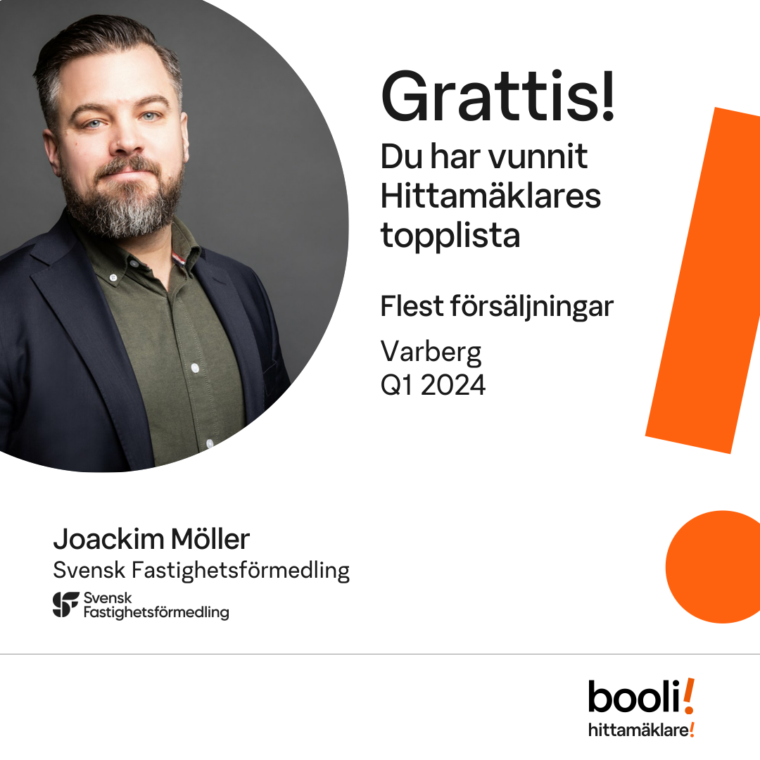 Statistik för publicerade bostäder, försäljningar och omdömen baseras på data från Booli och Hittamäklare. Statistiken för försäljningar avser inrapporterade och verifierade slutpriser från mäklare eller av Booli inhämtade och verifierade slutpriser. Statistiken för publicerade bostäder baseras på information som publicerats på Booli.se. Statistik för omdömen och rekommendationer baseras på omdömen från säljare som lämnats via Booli och Hittamäklare.