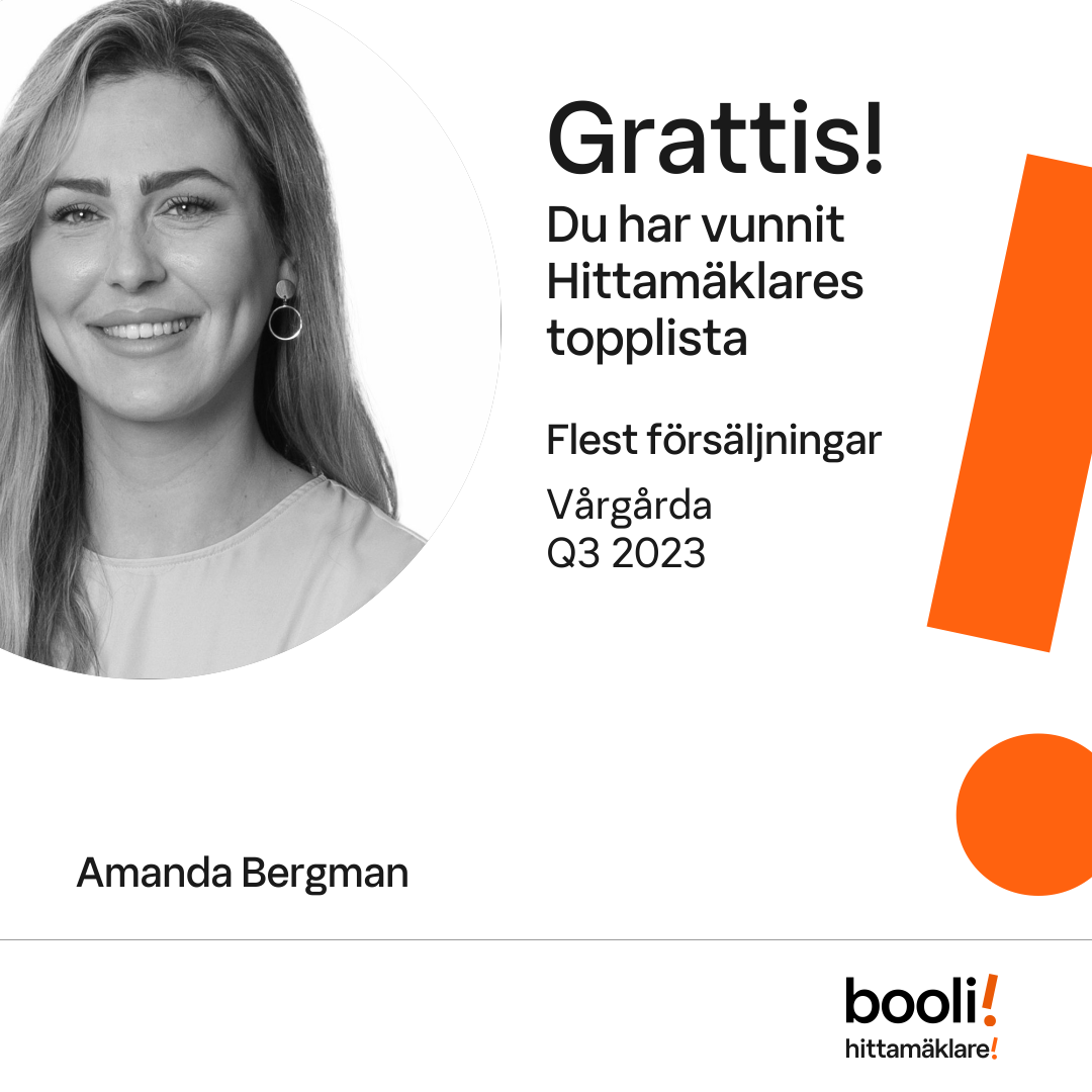 Statistik för publicerade bostäder, försäljningar och omdömen baseras på data från Booli och Hittamäklare. Statistiken för försäljningar avser inrapporterade och verifierade slutpriser från mäklare eller av Booli inhämtade och verifierade slutpriser. Statistiken för publicerade bostäder baseras på information som publicerats på Booli.se. Statistik för omdömen och rekommendationer baseras på omdömen från säljare som lämnats via Booli och Hittamäklare.