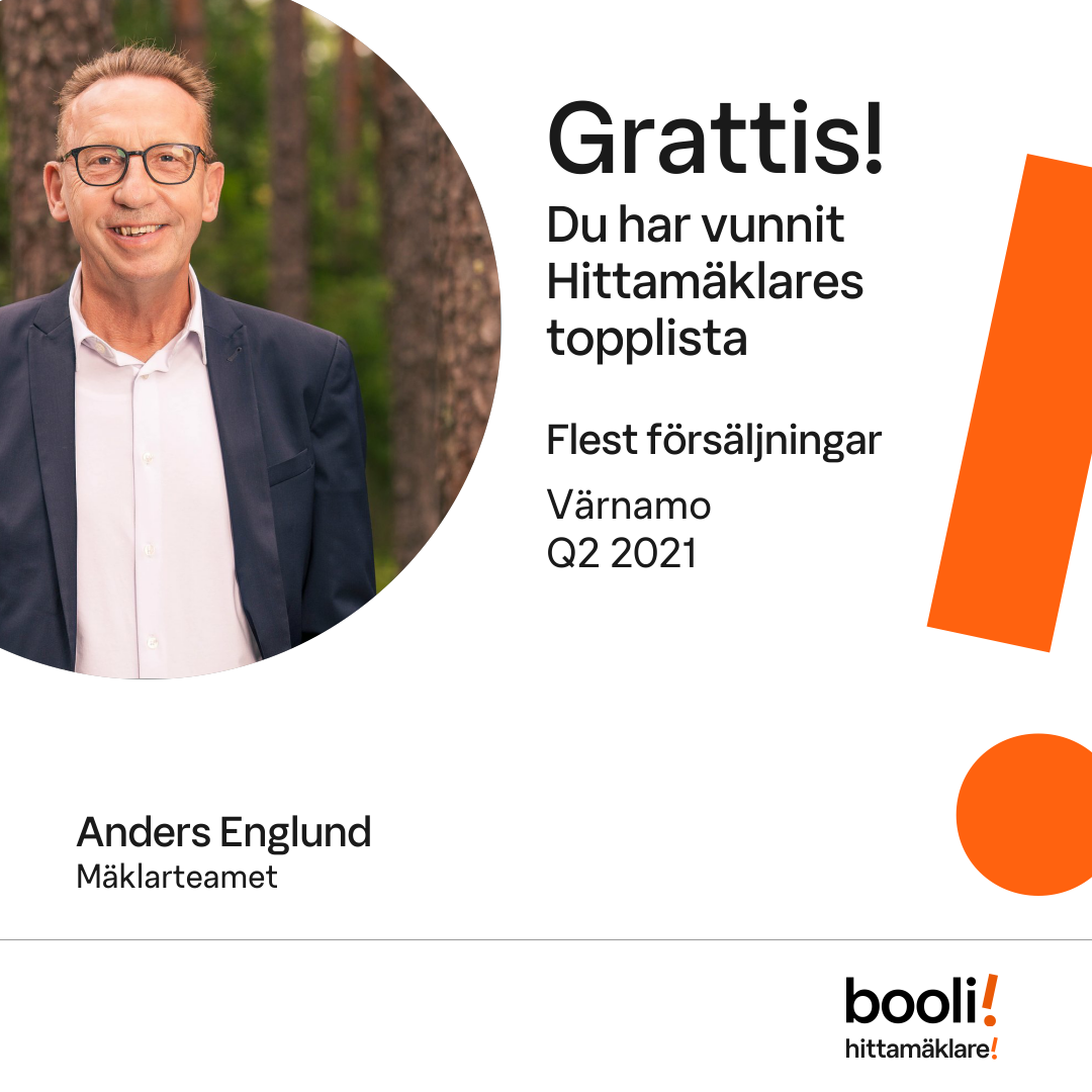 Statistik för publicerade bostäder, försäljningar och omdömen baseras på data från Booli och Hittamäklare. Statistiken för försäljningar avser inrapporterade och verifierade slutpriser från mäklare eller av Booli inhämtade och verifierade slutpriser. Statistiken för publicerade bostäder baseras på information som publicerats på Booli.se. Statistik för omdömen och rekommendationer baseras på omdömen från säljare som lämnats via Booli och Hittamäklare.