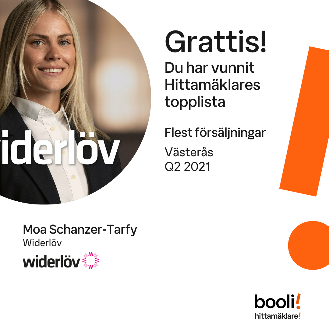 Statistik för publicerade bostäder, försäljningar och omdömen baseras på data från Booli och Hittamäklare. Statistiken för försäljningar avser inrapporterade och verifierade slutpriser från mäklare eller av Booli inhämtade och verifierade slutpriser. Statistiken för publicerade bostäder baseras på information som publicerats på Booli.se. Statistik för omdömen och rekommendationer baseras på omdömen från säljare som lämnats via Booli och Hittamäklare.