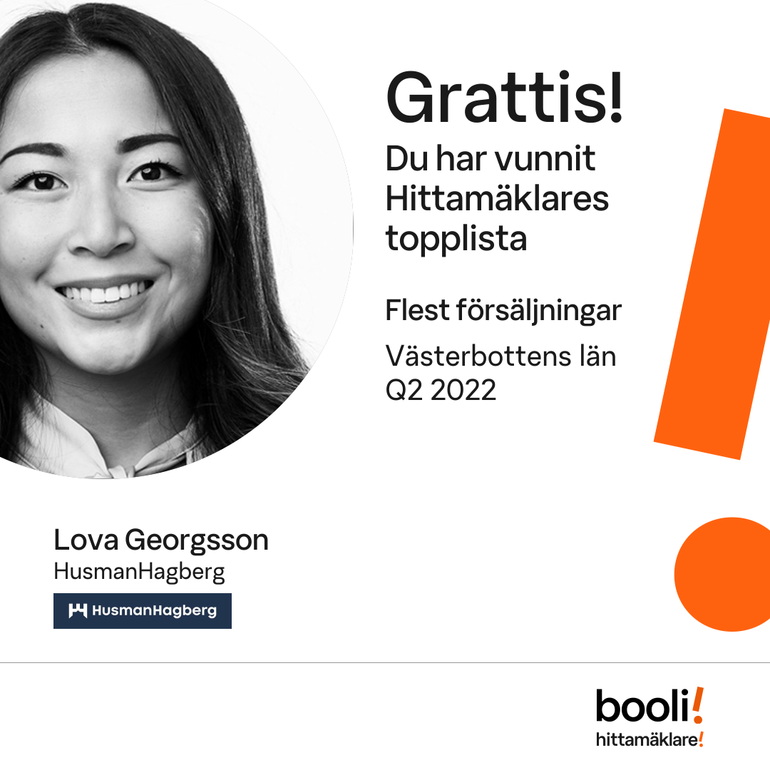 Statistik för publicerade bostäder, försäljningar och omdömen baseras på data från Booli och Hittamäklare. Statistiken för försäljningar avser inrapporterade och verifierade slutpriser från mäklare eller av Booli inhämtade och verifierade slutpriser. Statistiken för publicerade bostäder baseras på information som publicerats på Booli.se. Statistik för omdömen och rekommendationer baseras på omdömen från säljare som lämnats via Booli och Hittamäklare.