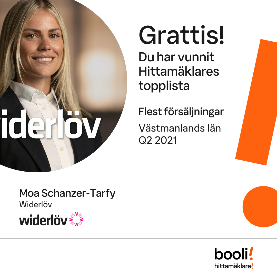 Statistik för publicerade bostäder, försäljningar och omdömen baseras på data från Booli och Hittamäklare. Statistiken för försäljningar avser inrapporterade och verifierade slutpriser från mäklare eller av Booli inhämtade och verifierade slutpriser. Statistiken för publicerade bostäder baseras på information som publicerats på Booli.se. Statistik för omdömen och rekommendationer baseras på omdömen från säljare som lämnats via Booli och Hittamäklare.