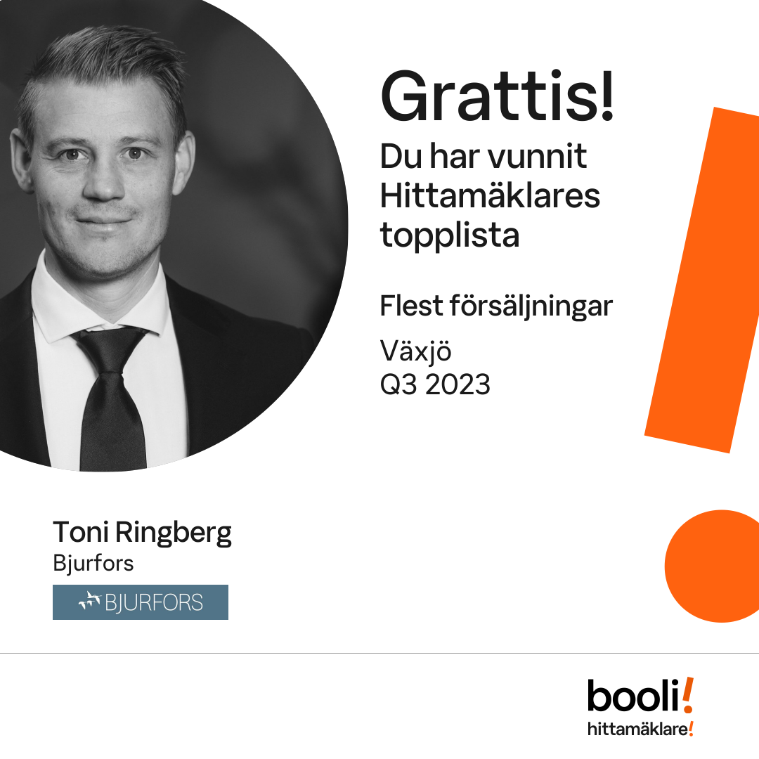 Statistik för publicerade bostäder, försäljningar och omdömen baseras på data från Booli och Hittamäklare. Statistiken för försäljningar avser inrapporterade och verifierade slutpriser från mäklare eller av Booli inhämtade och verifierade slutpriser. Statistiken för publicerade bostäder baseras på information som publicerats på Booli.se. Statistik för omdömen och rekommendationer baseras på omdömen från säljare som lämnats via Booli och Hittamäklare.