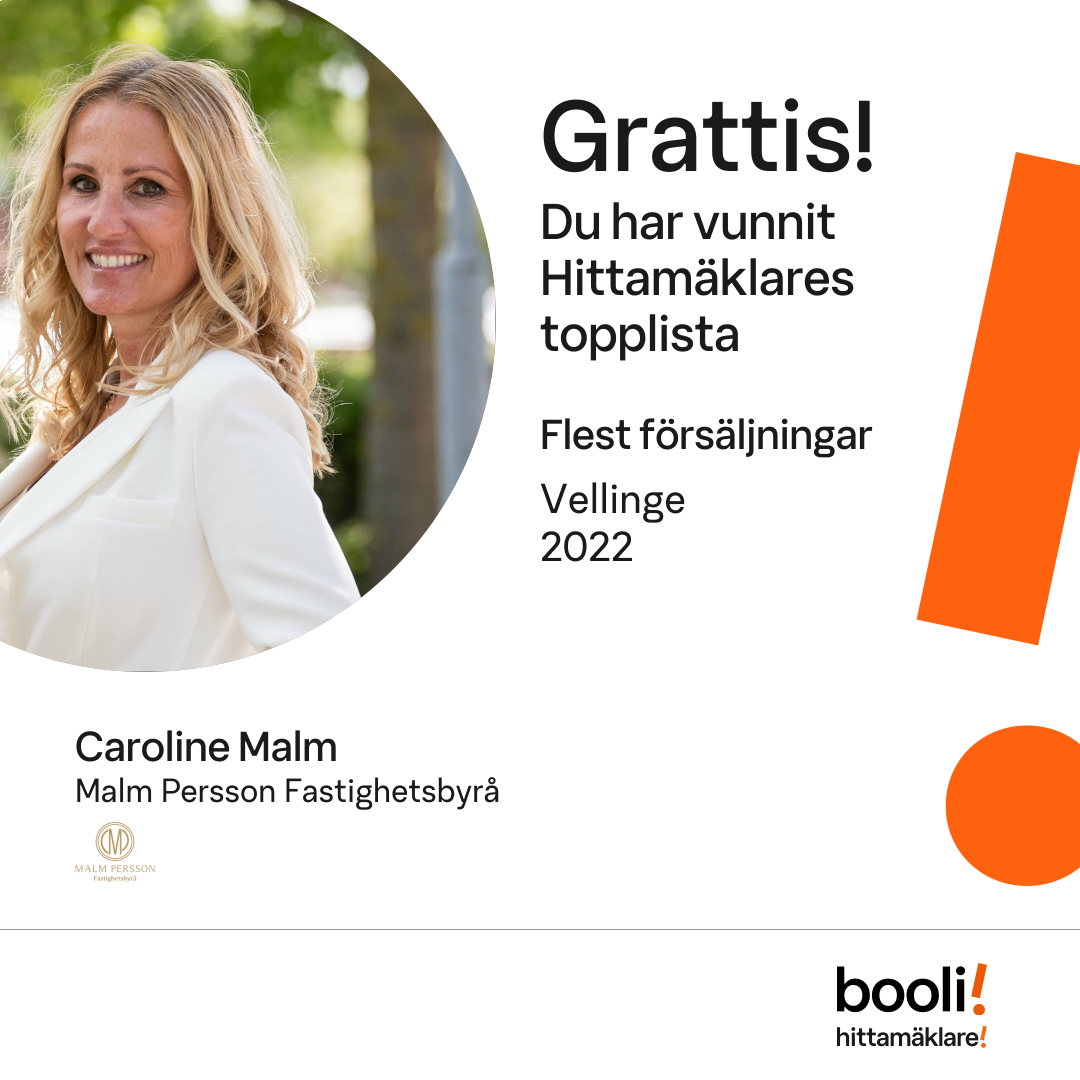 Statistik för publicerade bostäder, försäljningar och omdömen baseras på data från Booli och Hittamäklare. Statistiken för försäljningar avser inrapporterade och verifierade slutpriser från mäklare eller av Booli inhämtade och verifierade slutpriser. Statistiken för publicerade bostäder baseras på information som publicerats på Booli.se. Statistik för omdömen och rekommendationer baseras på omdömen från säljare som lämnats via Booli och Hittamäklare.