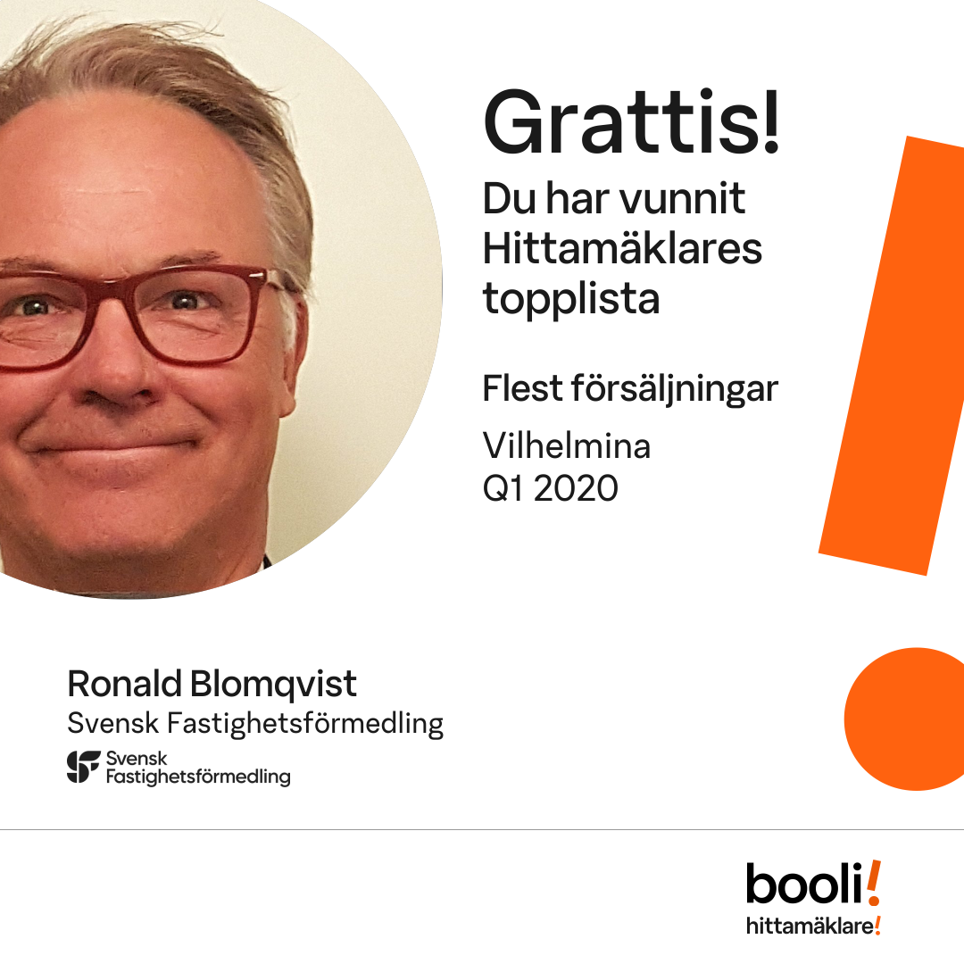 Statistik för publicerade bostäder, försäljningar och omdömen baseras på data från Booli och Hittamäklare. Statistiken för försäljningar avser inrapporterade och verifierade slutpriser från mäklare eller av Booli inhämtade och verifierade slutpriser. Statistiken för publicerade bostäder baseras på information som publicerats på Booli.se. Statistik för omdömen och rekommendationer baseras på omdömen från säljare som lämnats via Booli och Hittamäklare.