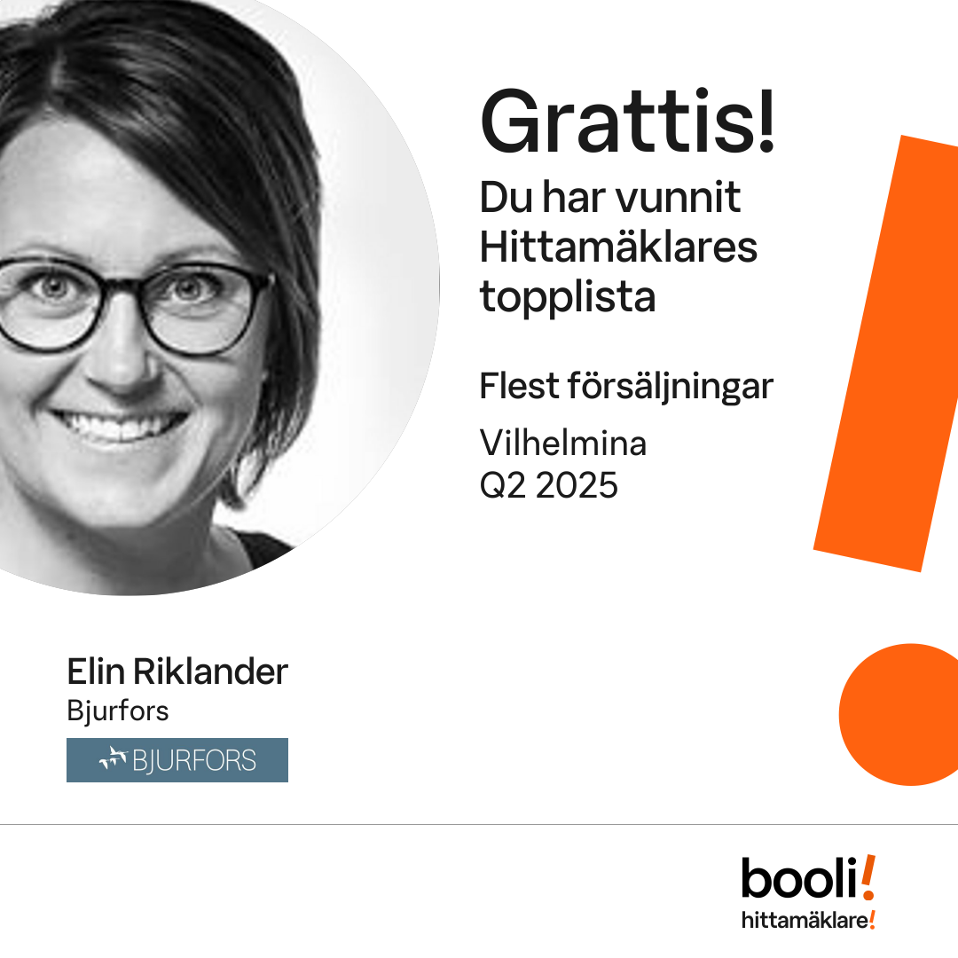 Statistik för publicerade bostäder, försäljningar och omdömen baseras på data från Booli och Hittamäklare. Statistiken för försäljningar avser inrapporterade och verifierade slutpriser från mäklare eller av Booli inhämtade och verifierade slutpriser. Statistiken för publicerade bostäder baseras på information som publicerats på Booli.se. Statistik för omdömen och rekommendationer baseras på omdömen från säljare som lämnats via Booli och Hittamäklare.