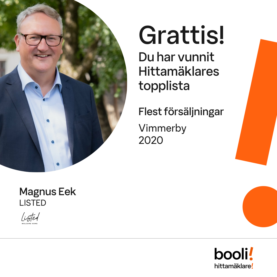 Statistik för publicerade bostäder, försäljningar och omdömen baseras på data från Booli och Hittamäklare. Statistiken för försäljningar avser inrapporterade och verifierade slutpriser från mäklare eller av Booli inhämtade och verifierade slutpriser. Statistiken för publicerade bostäder baseras på information som publicerats på Booli.se. Statistik för omdömen och rekommendationer baseras på omdömen från säljare som lämnats via Booli och Hittamäklare.