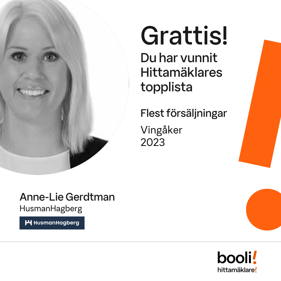 Statistik för publicerade bostäder, försäljningar och omdömen baseras på data från Booli och Hittamäklare. Statistiken för försäljningar avser inrapporterade och verifierade slutpriser från mäklare eller av Booli inhämtade och verifierade slutpriser. Statistiken för publicerade bostäder baseras på information som publicerats på Booli.se. Statistik för omdömen och rekommendationer baseras på omdömen från säljare som lämnats via Booli och Hittamäklare.