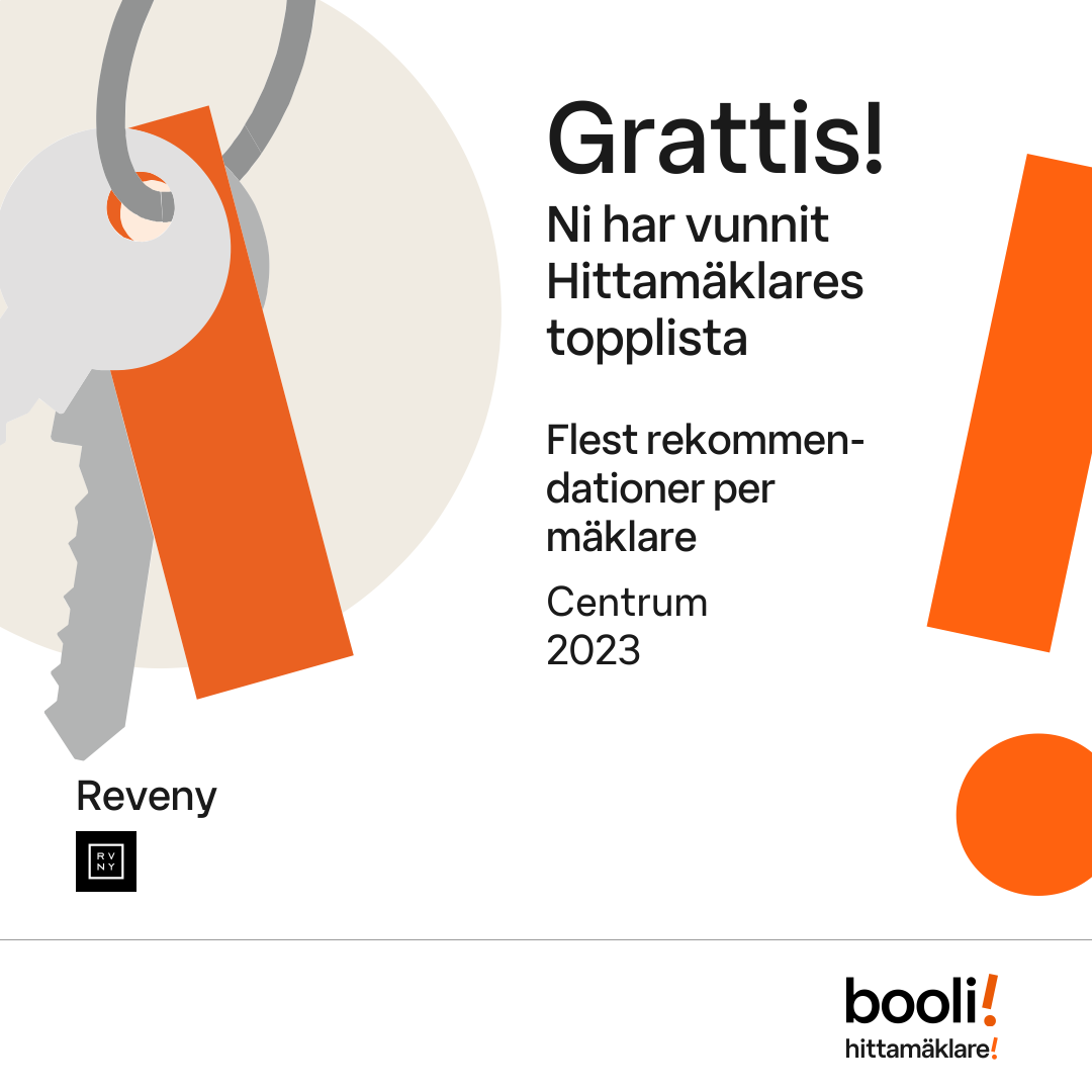 Statistik för publicerade bostäder, försäljningar och omdömen baseras på data från Booli och Hittamäklare. Statistiken för försäljningar avser inrapporterade och verifierade slutpriser från mäklare eller av Booli inhämtade och verifierade slutpriser. Statistiken för publicerade bostäder baseras på information som publicerats på Booli.se. Statistik för omdömen och rekommendationer baseras på omdömen från säljare som lämnats via Booli och Hittamäklare.
