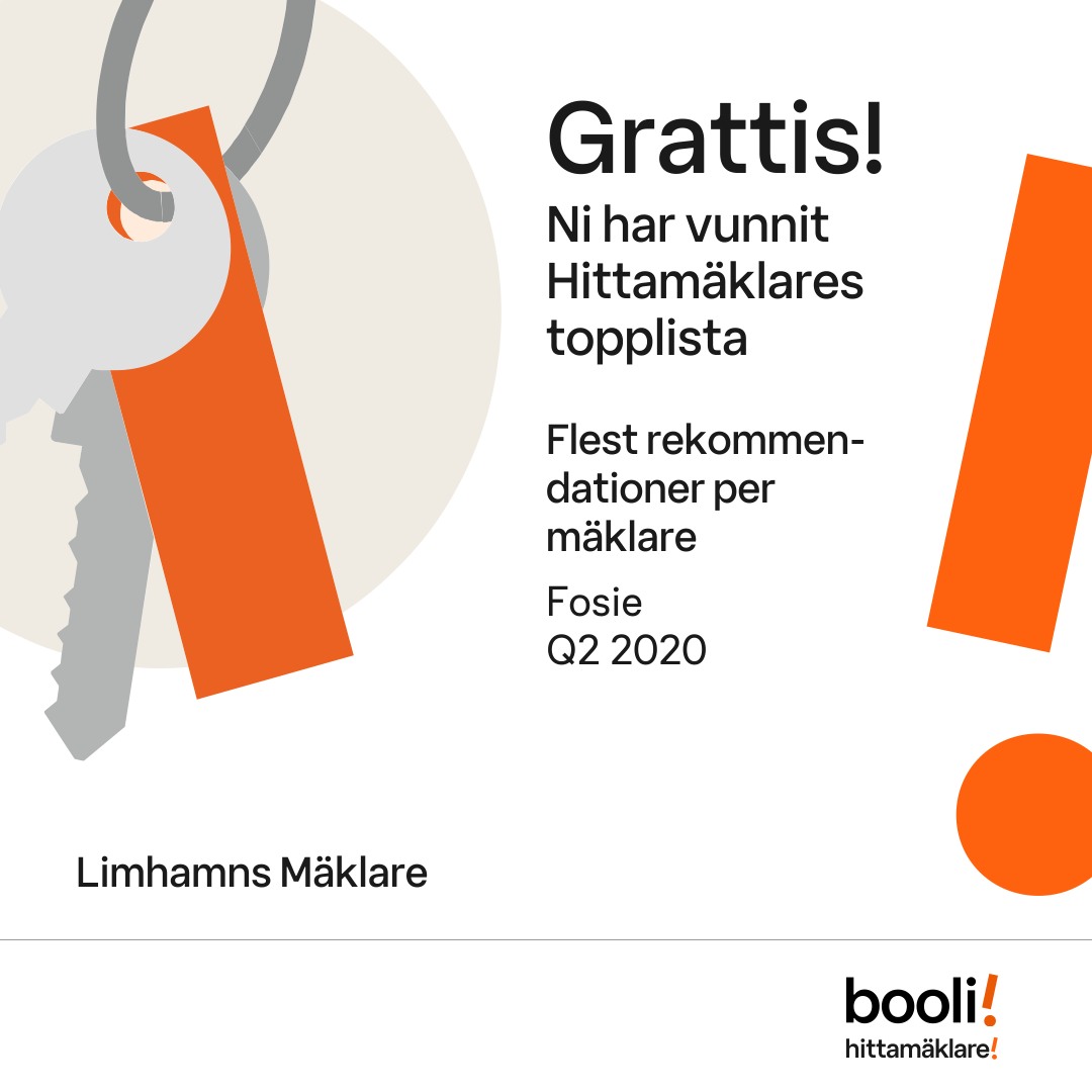 Statistik för publicerade bostäder, försäljningar och omdömen baseras på data från Booli och Hittamäklare. Statistiken för försäljningar avser inrapporterade och verifierade slutpriser från mäklare eller av Booli inhämtade och verifierade slutpriser. Statistiken för publicerade bostäder baseras på information som publicerats på Booli.se. Statistik för omdömen och rekommendationer baseras på omdömen från säljare som lämnats via Booli och Hittamäklare.