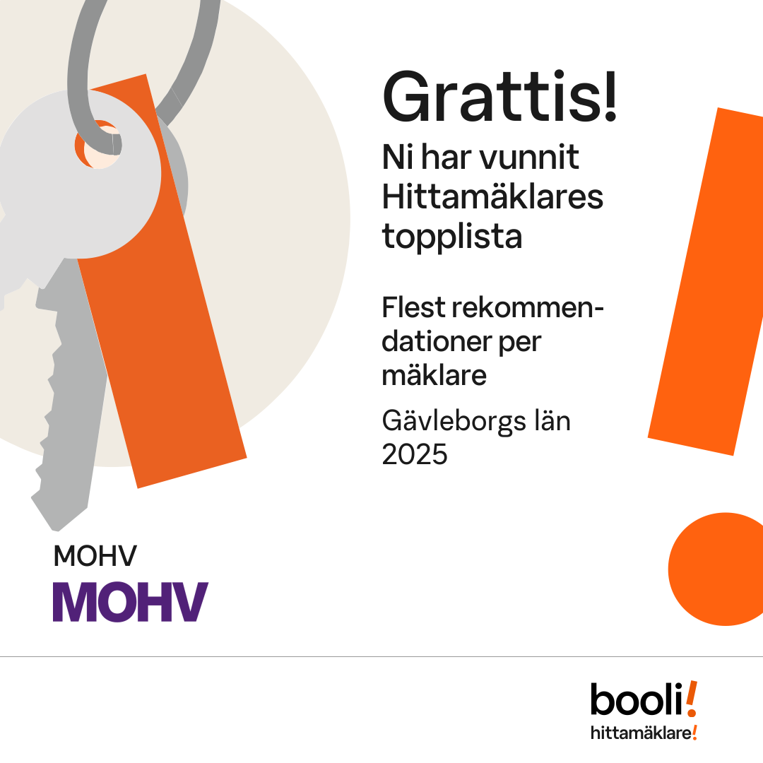 Statistik för publicerade bostäder, försäljningar och omdömen baseras på data från Booli och Hittamäklare. Statistiken för försäljningar avser inrapporterade och verifierade slutpriser från mäklare eller av Booli inhämtade och verifierade slutpriser. Statistiken för publicerade bostäder baseras på information som publicerats på Booli.se. Statistik för omdömen och rekommendationer baseras på omdömen från säljare som lämnats via Booli och Hittamäklare.