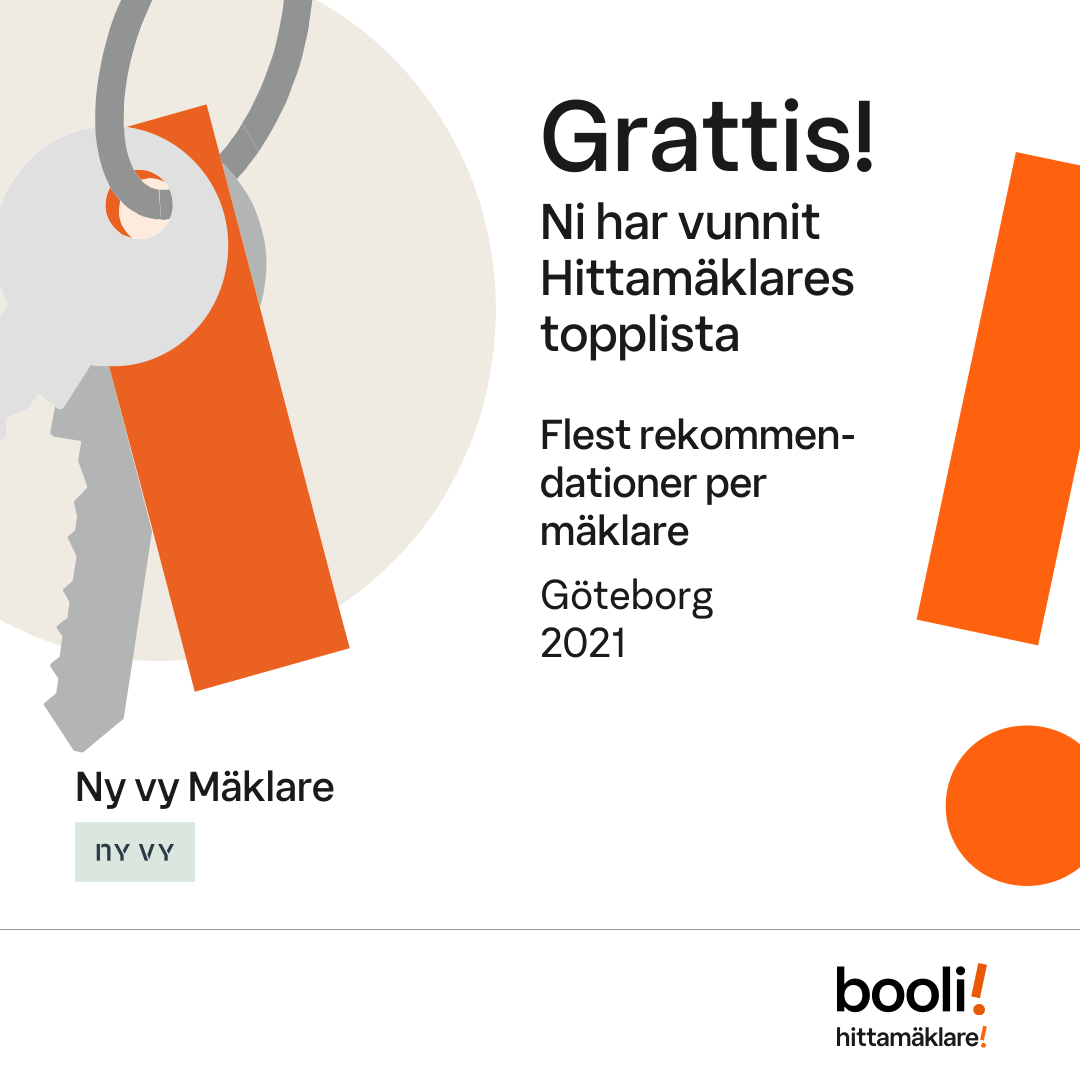 Statistik för publicerade bostäder, försäljningar och omdömen baseras på data från Booli och Hittamäklare. Statistiken för försäljningar avser inrapporterade och verifierade slutpriser från mäklare eller av Booli inhämtade och verifierade slutpriser. Statistiken för publicerade bostäder baseras på information som publicerats på Booli.se. Statistik för omdömen och rekommendationer baseras på omdömen från säljare som lämnats via Booli och Hittamäklare.