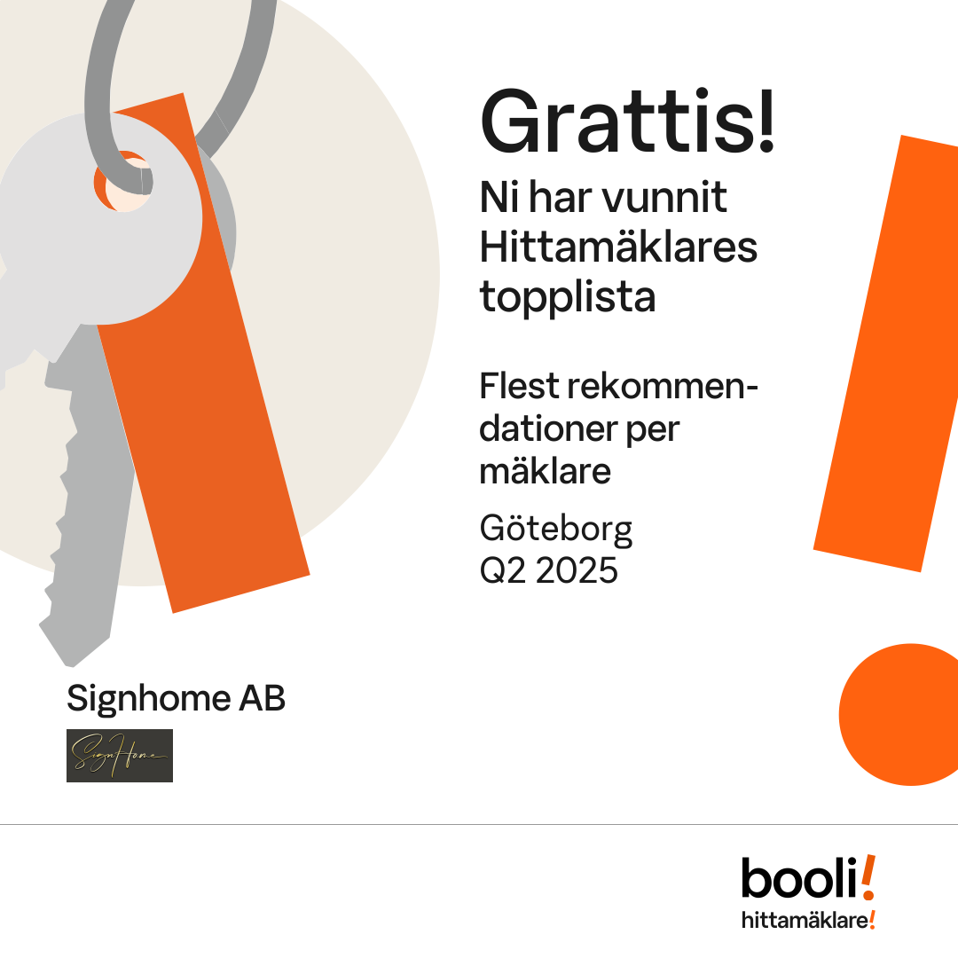 Statistik för publicerade bostäder, försäljningar och omdömen baseras på data från Booli och Hittamäklare. Statistiken för försäljningar avser inrapporterade och verifierade slutpriser från mäklare eller av Booli inhämtade och verifierade slutpriser. Statistiken för publicerade bostäder baseras på information som publicerats på Booli.se. Statistik för omdömen och rekommendationer baseras på omdömen från säljare som lämnats via Booli och Hittamäklare.